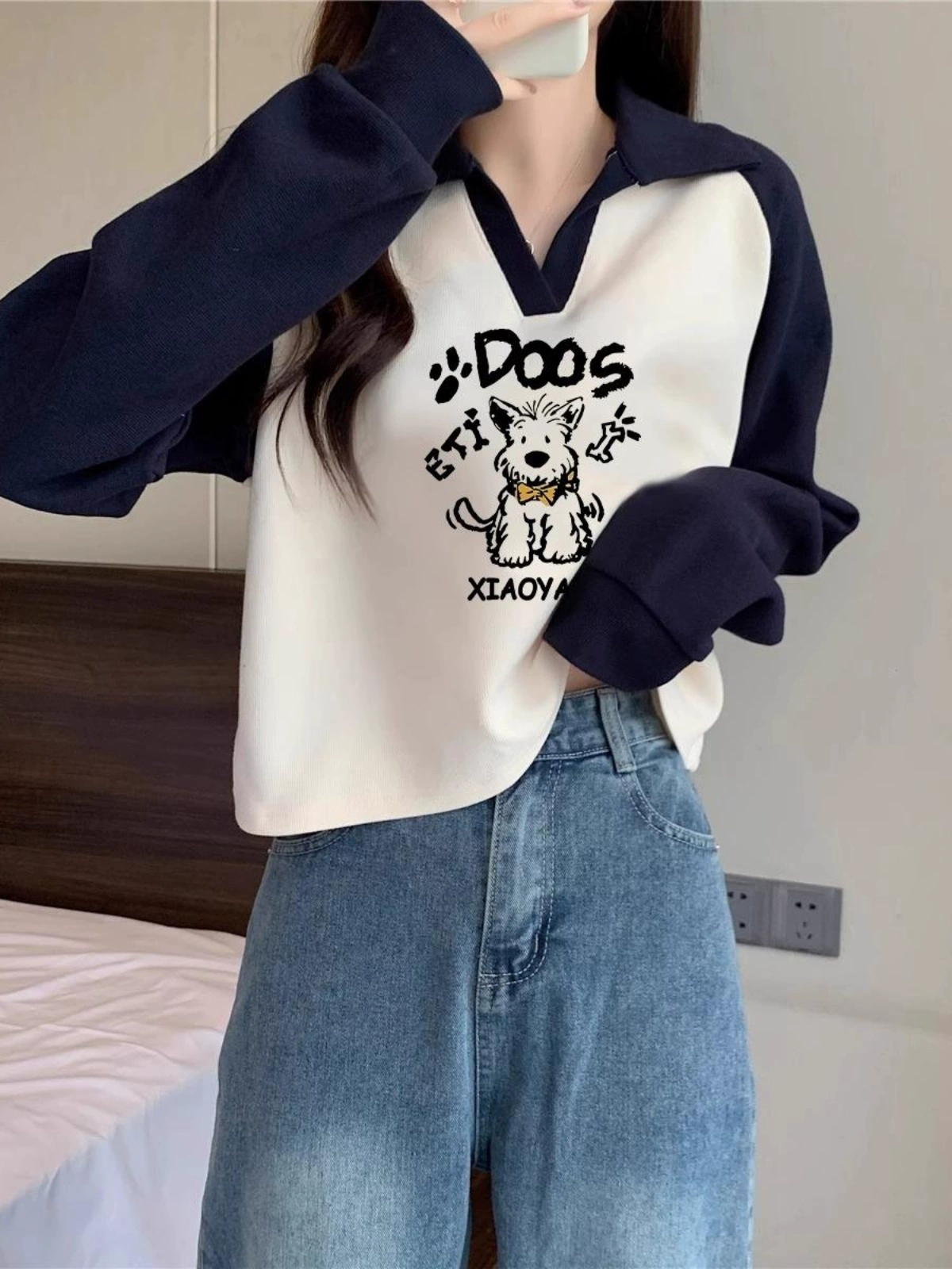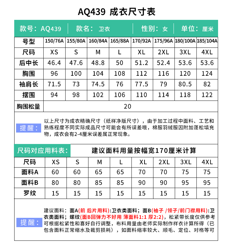 裁缝学苑AQ439插肩袖卫衣纸样女装新款撞色翻领上衣样板版型
