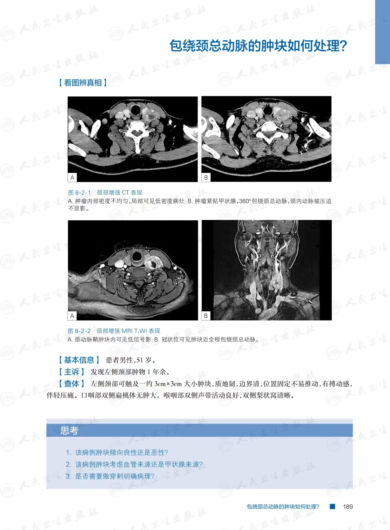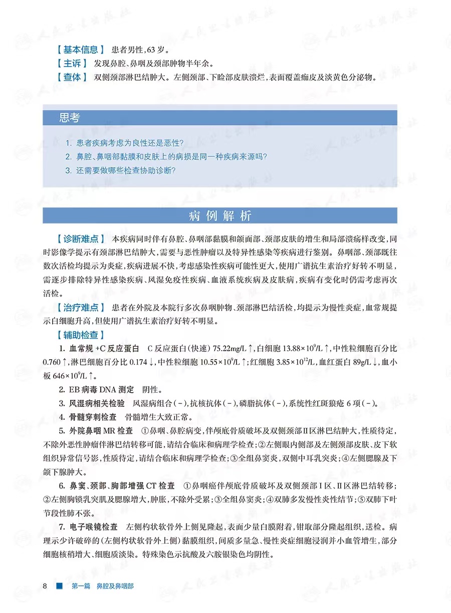 为了更多地激发读者思考,本书的内容设计上不同于既往教材式读物。笔者大胆尝试直接把关键图片及图例前移到开篇,然后再倒叙基本信息和主诉、查体,并配有相应的思考题。一方面开篇即见临床图片,充分调动读者的兴趣;另一方面,正如同接诊一位患者,想方设法拿到有限的关键信息后,先思索答案,再揭晓谜底。一道道思考题、一个个故事,仿佛一位位疑难患者就在面前就诊,通过简洁关键的病史和影像资料,触发医者深思。深思过后再揭开谜底,结合国内外文献,回顾疾病及整个诊疗过程、讨论分享诊治难点,起到举一反三的作用,为相关专业的同道诊治类似疾病提供依据,最终使医患共同受益。