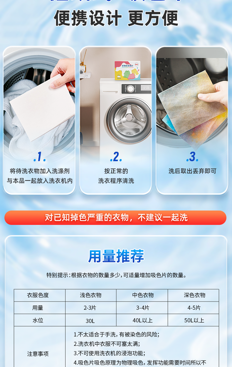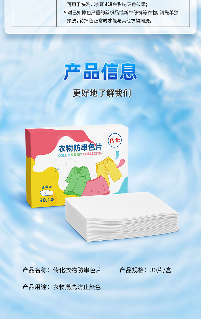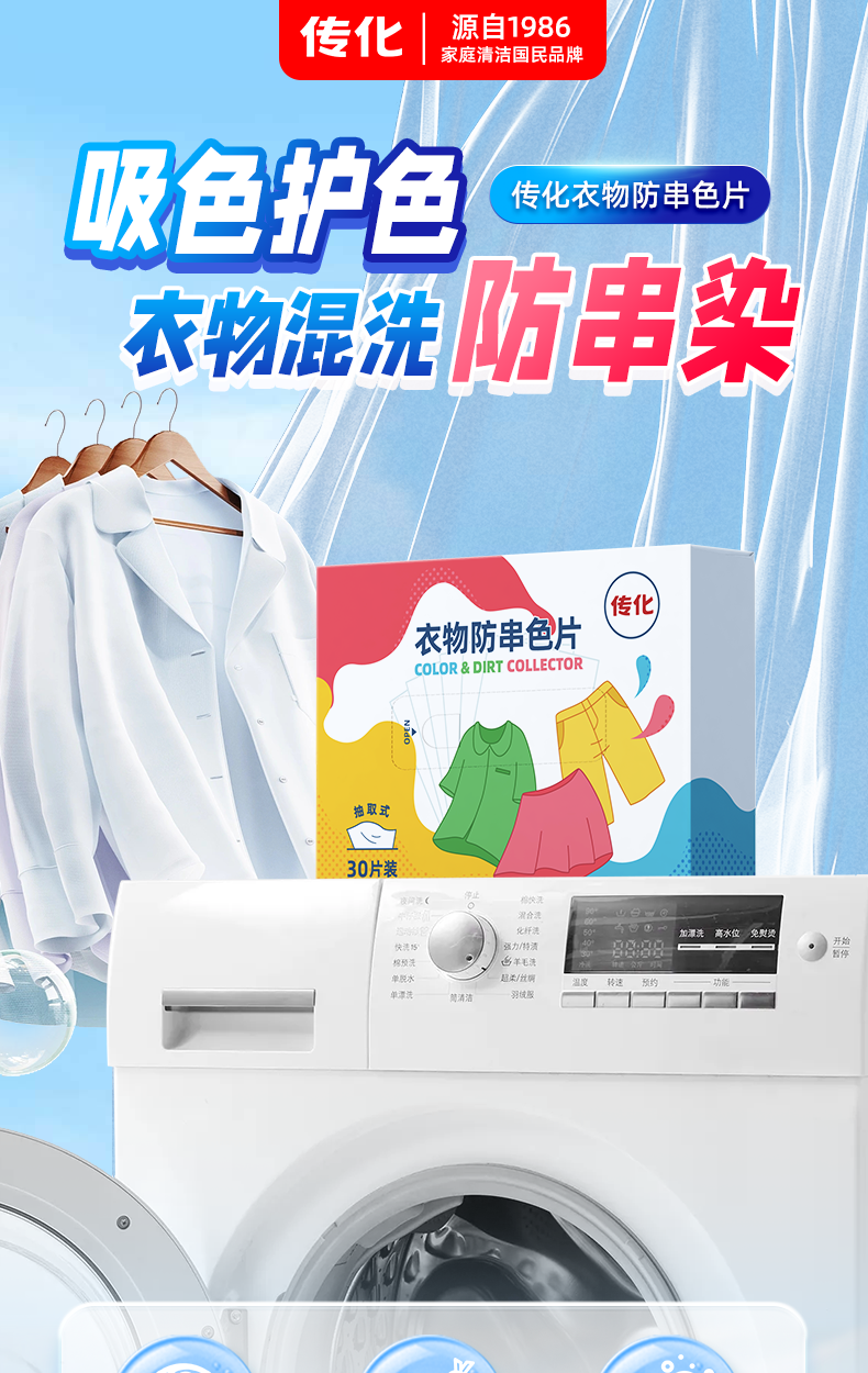 传化衣物防染色片 30片*1盒纳米防串色吸色片机洗吸色母片混洗不染色洗衣片
