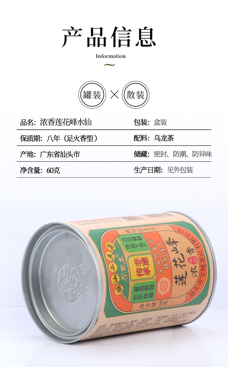 宝城莲花峰水仙茶叶60克散装罐装足火浓香型乌龙茶D452