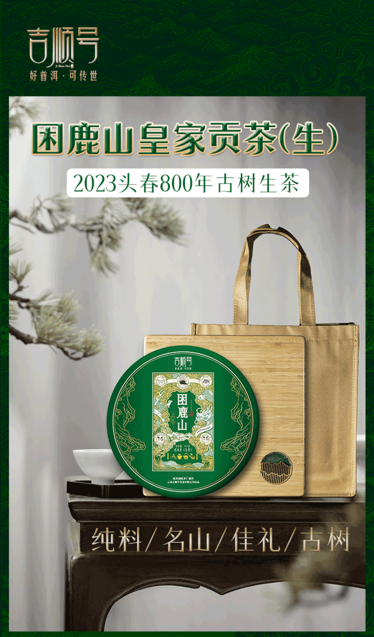 2023春茶吉顺号困鹿山古树800年普洱茶生茶叶礼盒