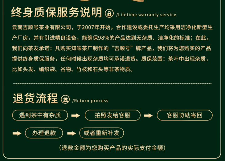 - 云南吉顺号茶业,专业云南普洱茶基地生产销售商。自有基地茶厂及运营仓储物流团队。