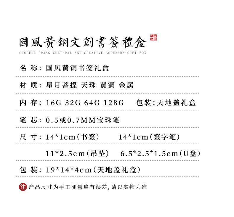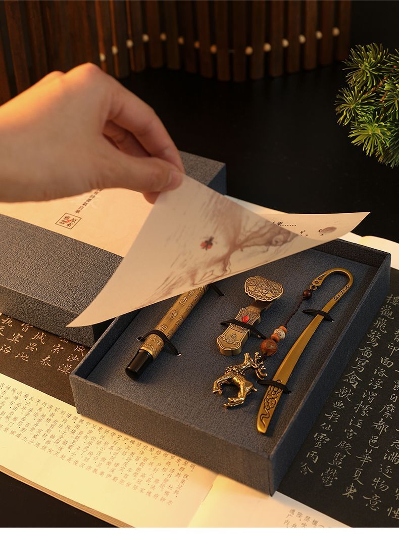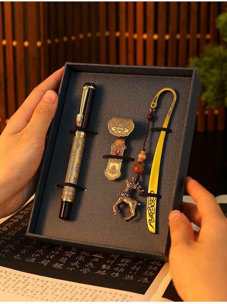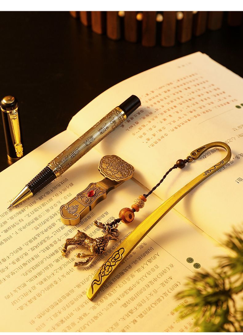 黄铜古典中国风书签U盘钢笔故宫创意礼物送老师客户学校伴手礼品