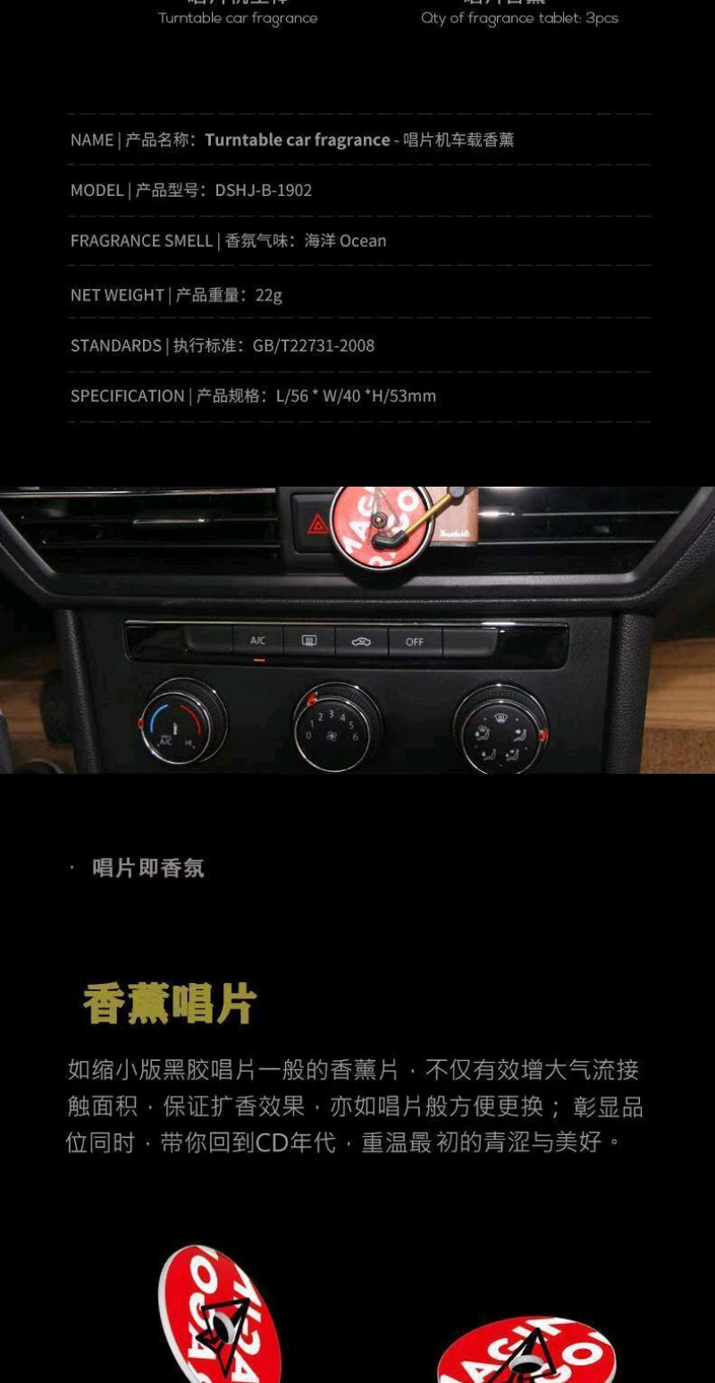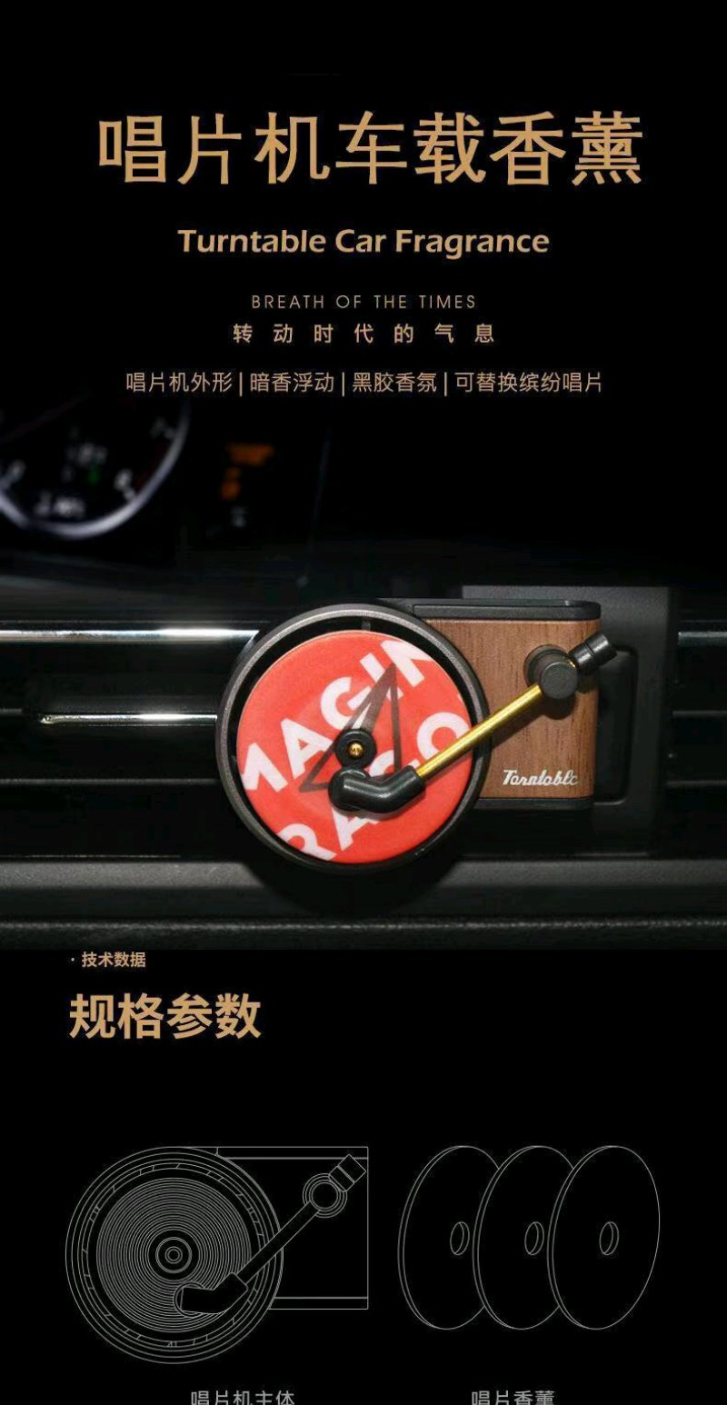 周杰伦车载香薰香片香水固体留声机唱片机汽车出风口净化空气内饰