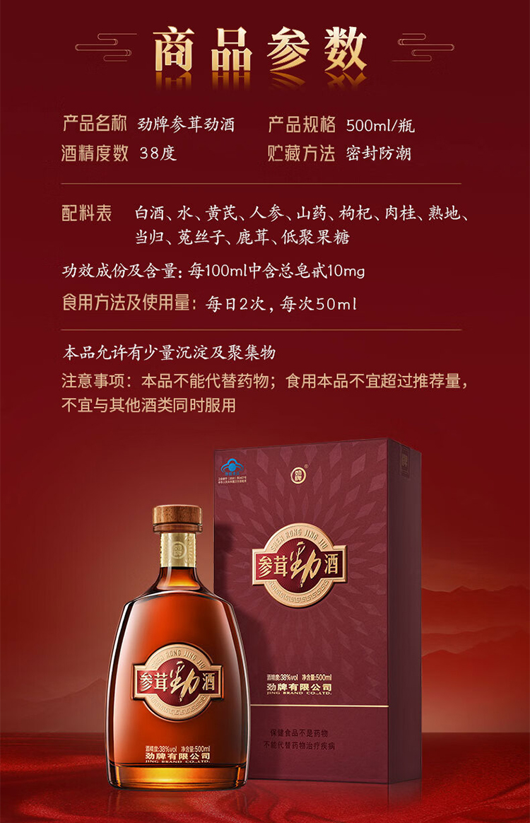 劲牌 参茸劲酒 38度 500ml 药材酿酒 送礼 自饮 小酌