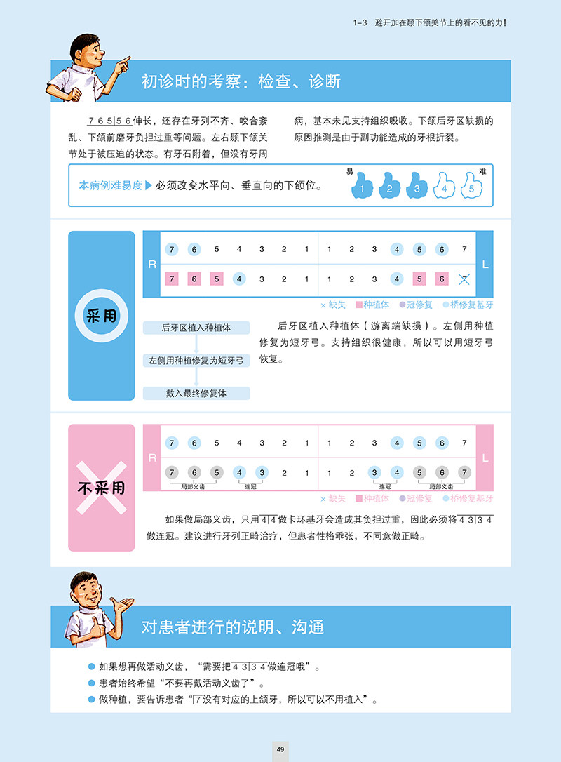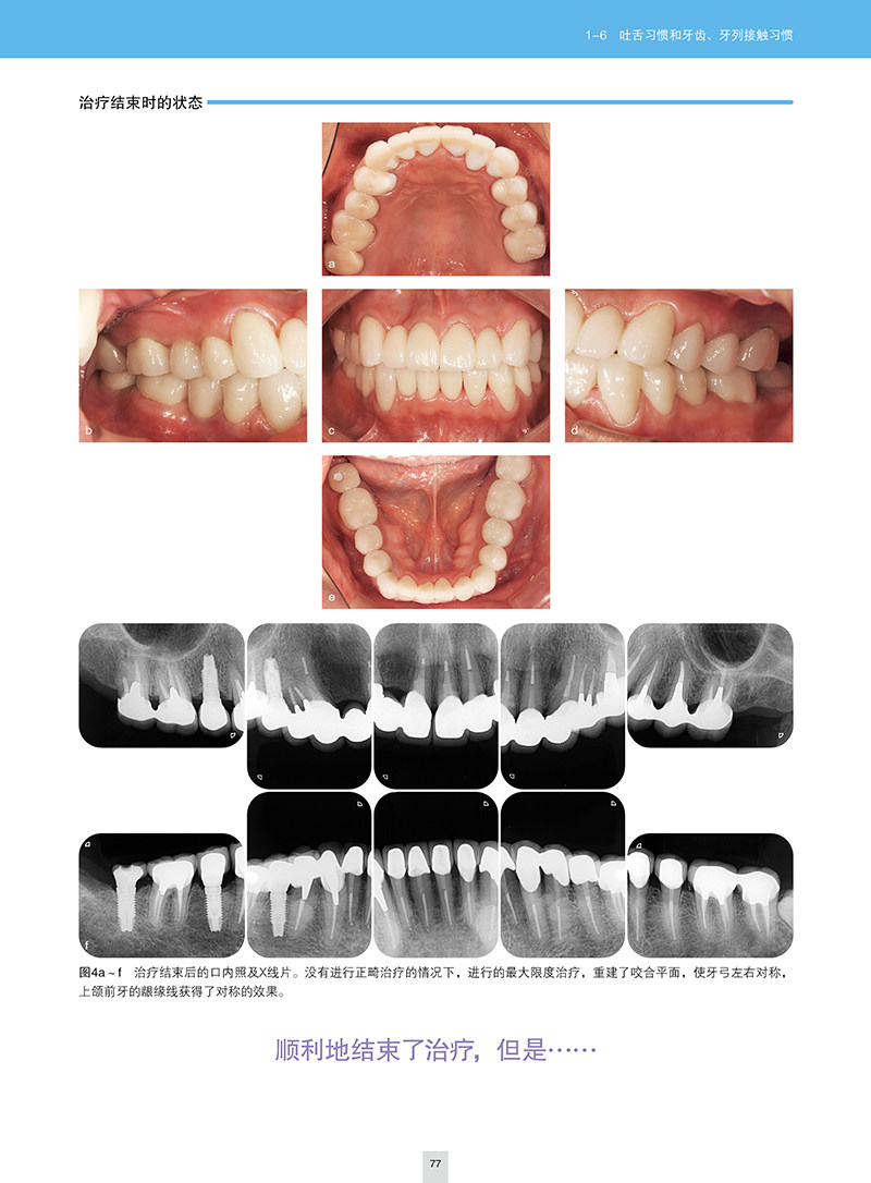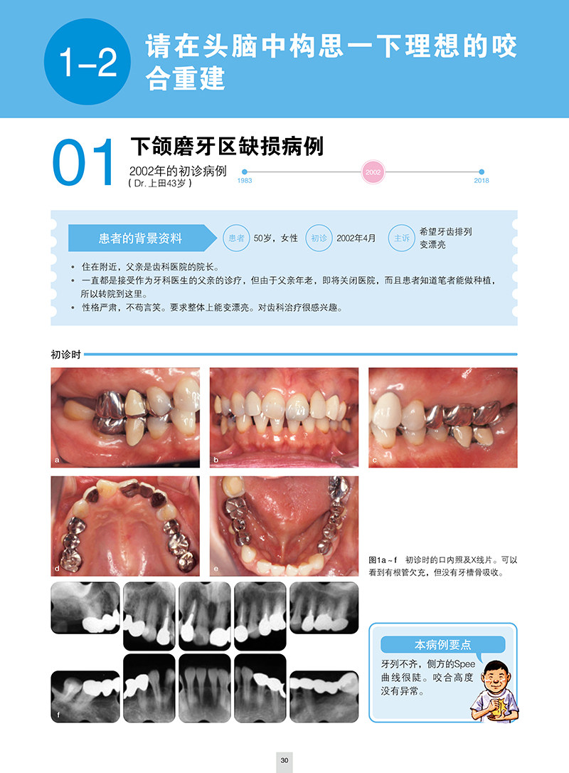 无论是否有临床症状,其实很多患者都存在着咬合问题。对于这样的患者,进行积极的治疗,可以使其获得良好的口内环境。而为了能让这种口腔环境长久地保持下去,就有必要用确切的咬合重建来纠正不良的咬合关系并调和口颌系统(颞下颌关节、口腔周围肌肉、牙齿及牙周组织)。实际的患者往往混杂存在着牙列不齐、牙周病、牙齿缺失、副功能等多种病因,本书将患者的疾病状态分为“牙列不齐”“牙周病”“多牙缺失”3类,并结合笔者多年累积的经验以及对患者长期预后的观察,对每类病症所表现出的疾病特征、治疗方针、临床要点以及复杂患者的应对方法等进行了记述。