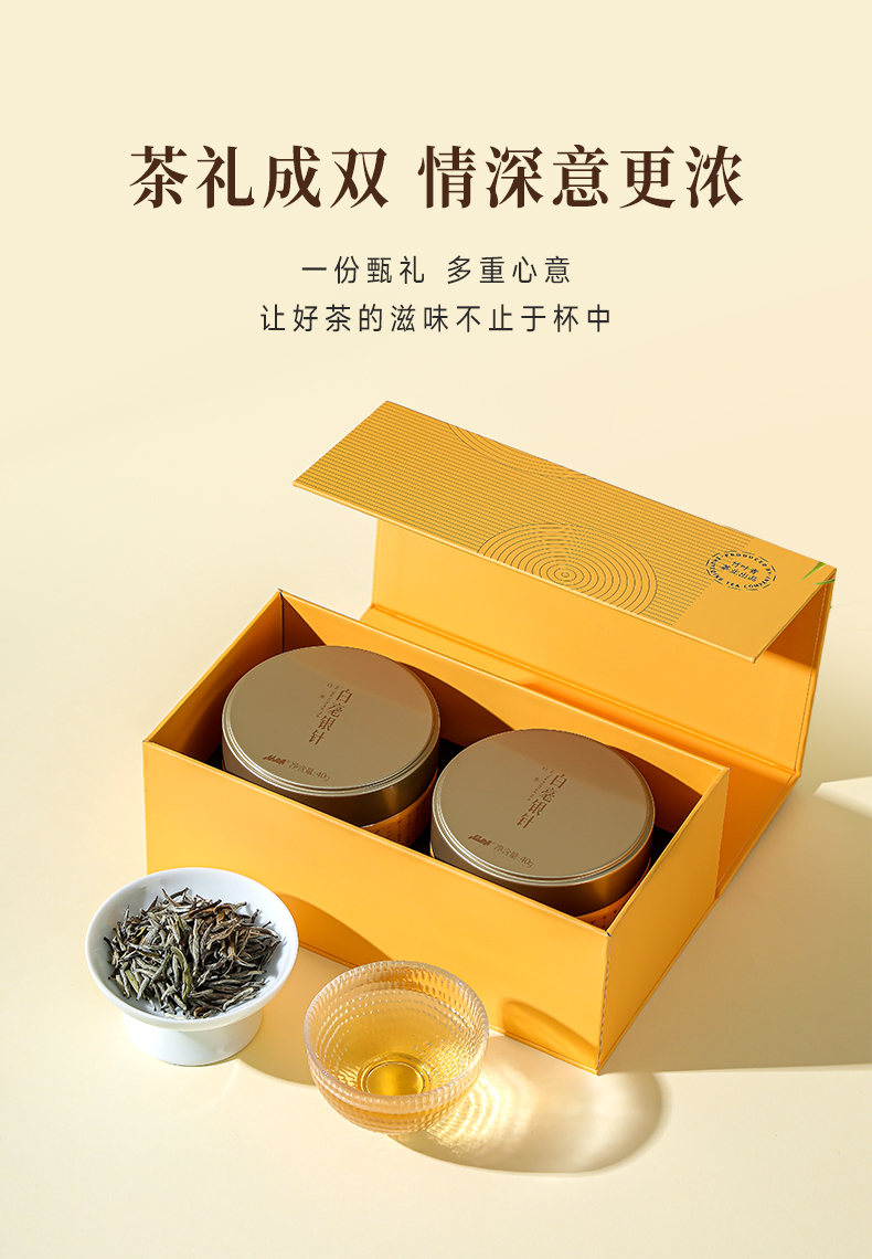 品味牌白毫银针一级双罐礼盒装茶叶80g送长辈自己喝 竹叶青茶业