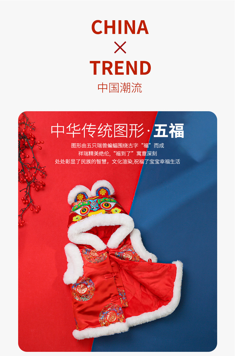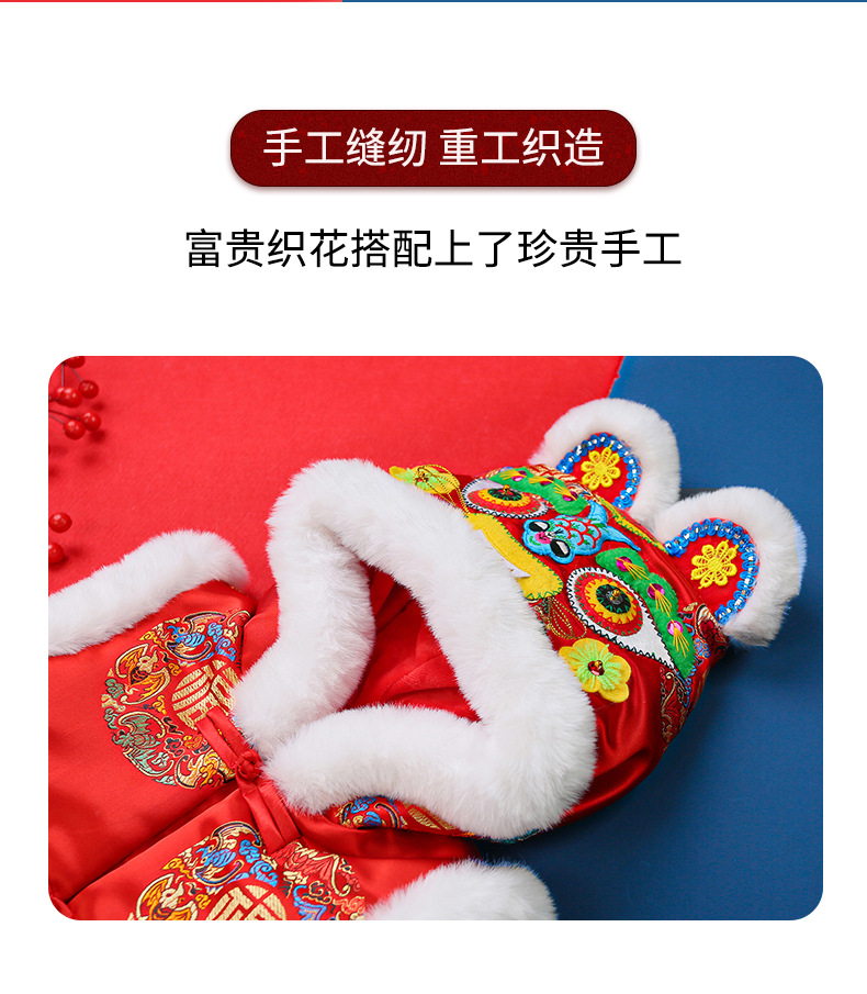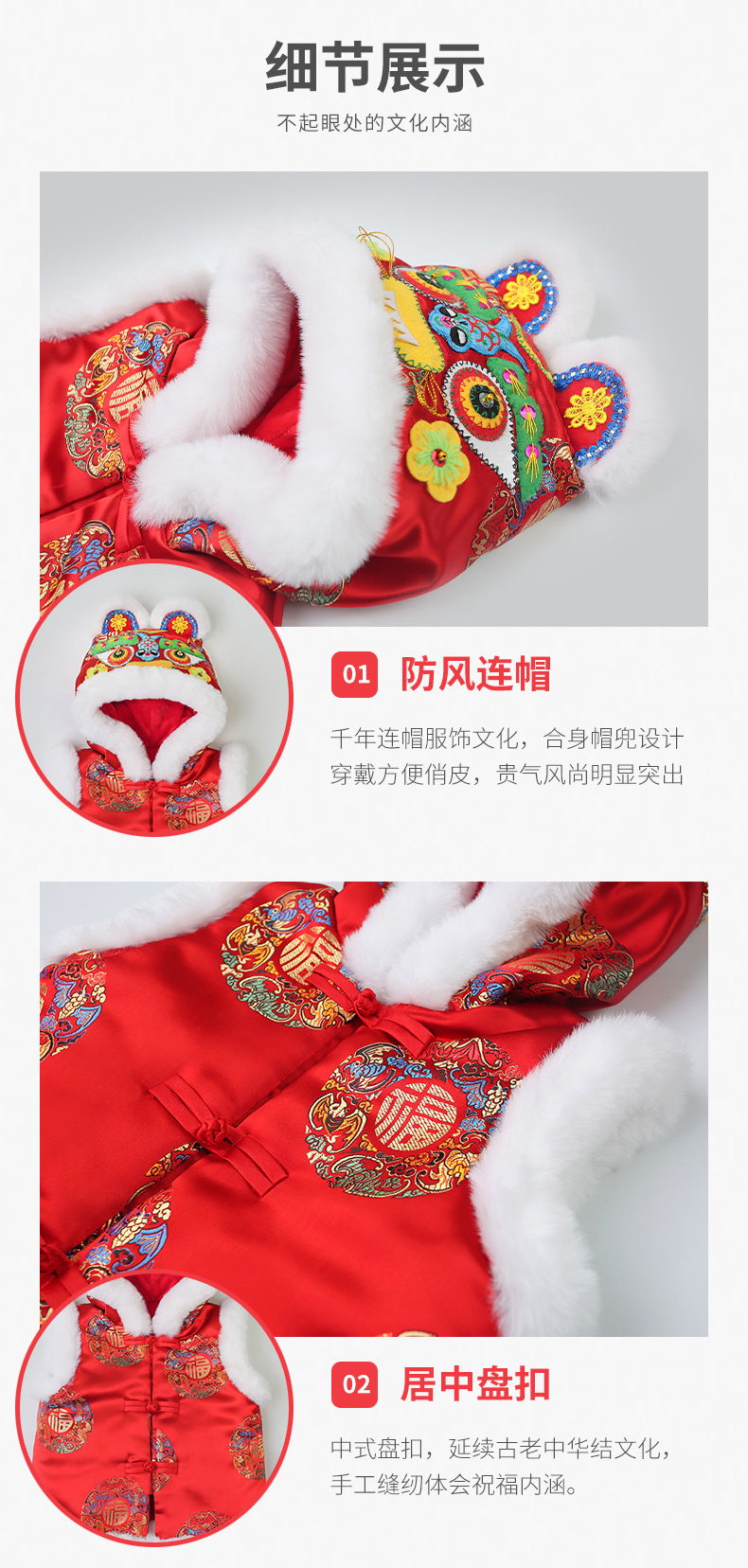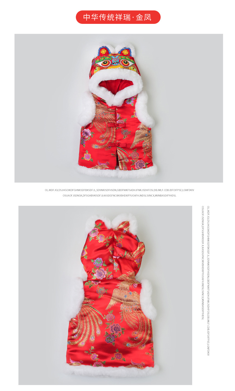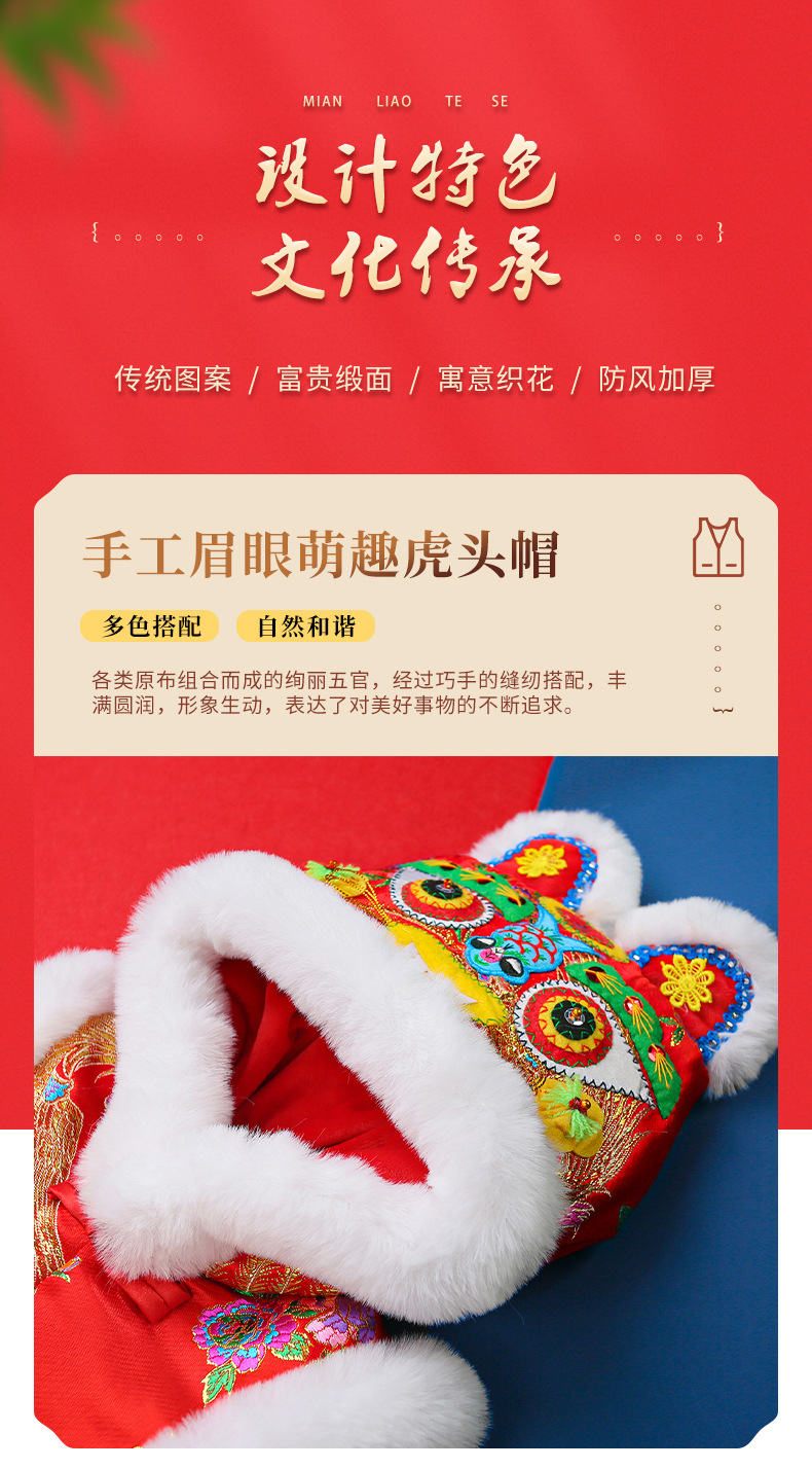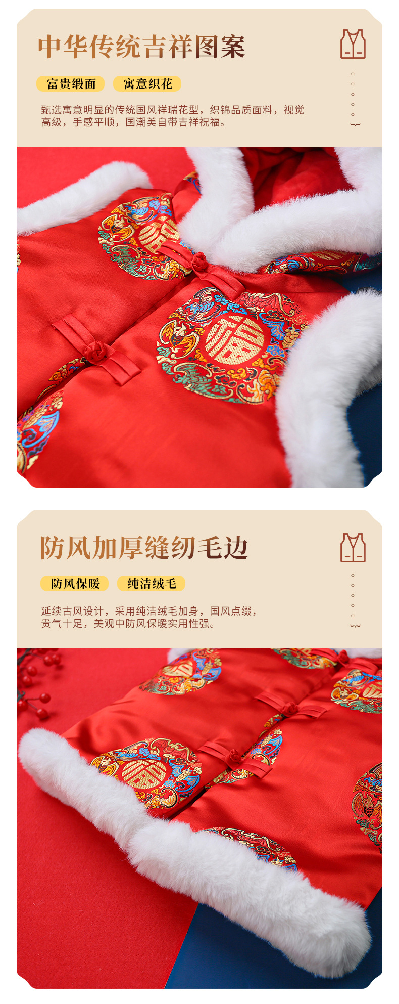 【采用优质织锦缎面 手工缝制 重工织造】新款宝宝虎头帽马甲织锦缎开衫中小童加厚马甲民族拜年唐装红坎肩