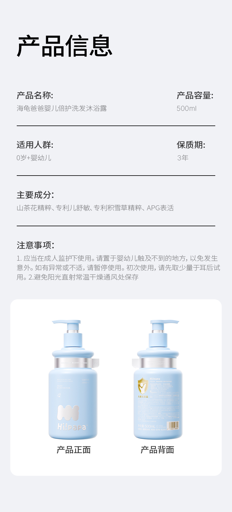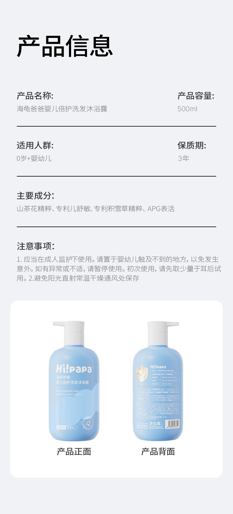 海龟爸爸青少年儿童3-12岁洗发露沐浴露婴儿倍护洗发沐浴露二合一