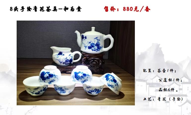景德镇陶瓷 国瓷红叶 7头釉下手绘五彩茶具--富贵祥瑞