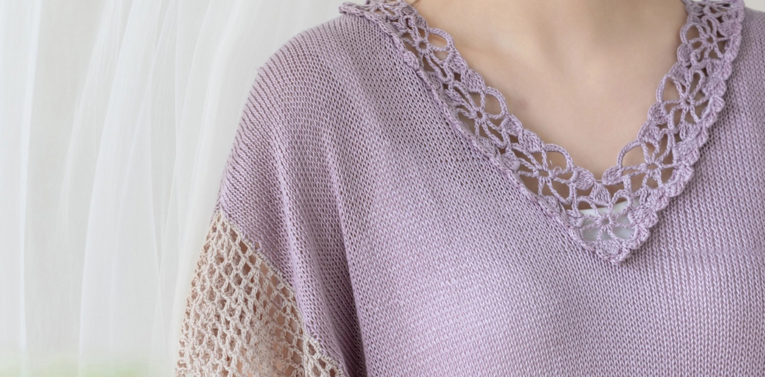 苏苏姐家荷薇上衣手工diy钩针棒针编织真丝桑蚕丝衣服材料包