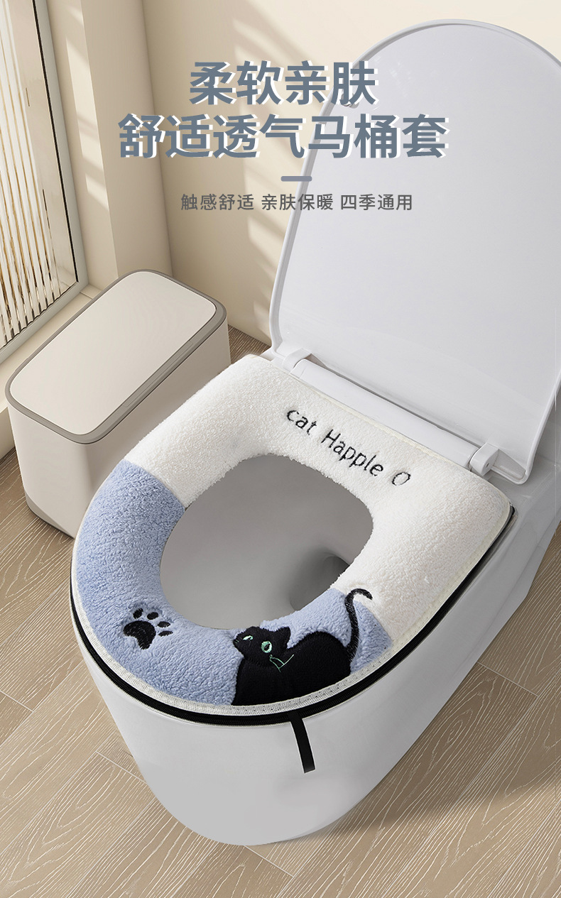 【自带提手❗️四季通用马桶垫】可反复水洗反复使用,越洗越柔软亲肤, 舒适保暖,任意粘贴不易掉毛,新款家用加厚印花防水坐便垫坐便套马桶垫子QQ
