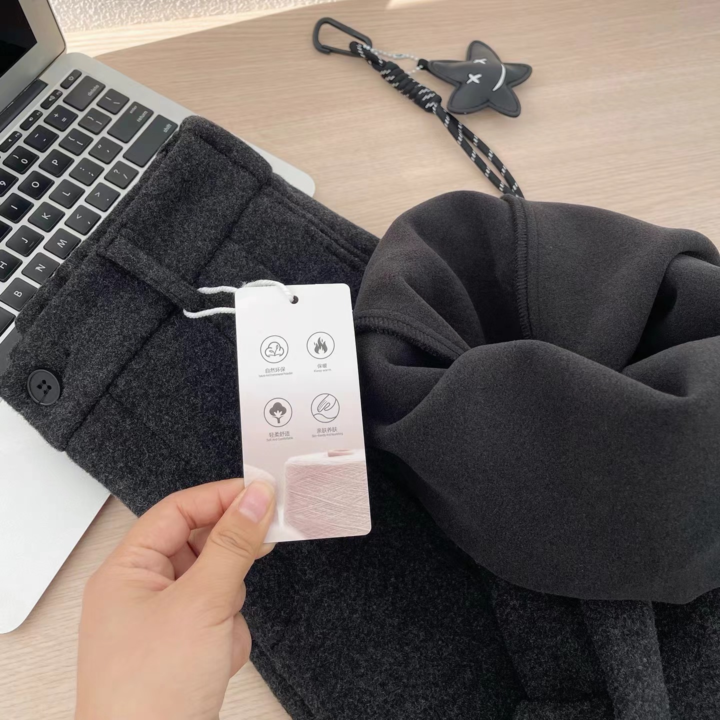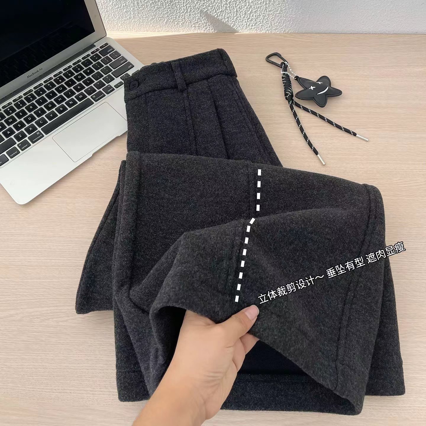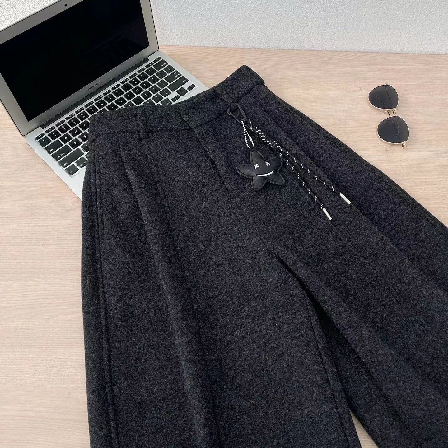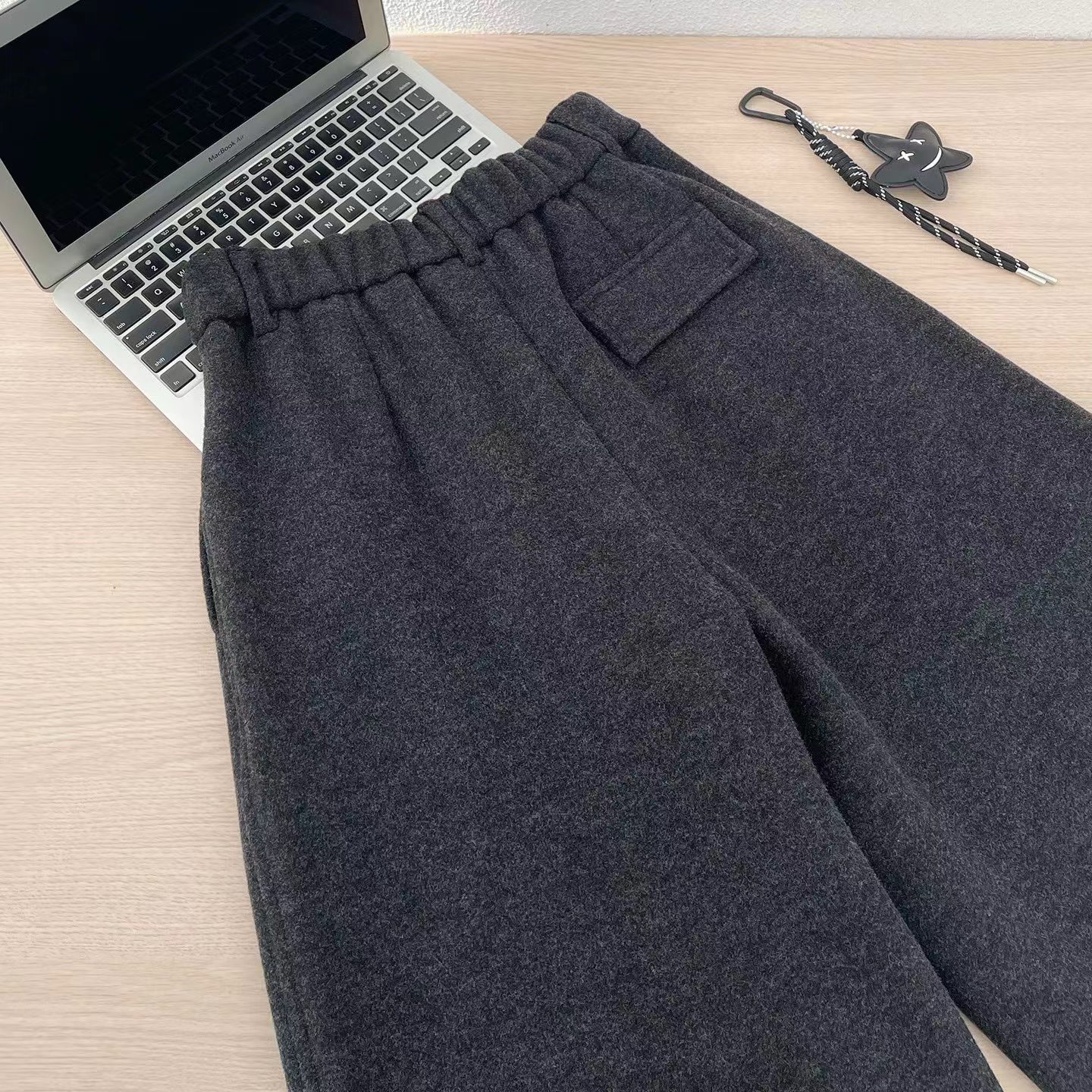 后半松紧腰毛呢羊毛裤宽松直筒加绒休闲阔腿裤女秋冬裤子八分裤冬,「冬日氛围感"神裤",暖而不臃肿」毛呢质感自带糕级滤镜,垂坠阔型藏肉显瘦八分长度刚好露脚踝,搭短靴利落又显高内里加绒锁温不厚重,冬天穿脱不冰腿日常通勤/休闲出街都适配,抽绳上的星星挂饰是小心机简约基础款也能穿出松弛时髦感~后半松紧腰的设计舒适不勒肚子(PS:这款属于高品质的含15%的羊毛,内里做工更是高规格超满意)