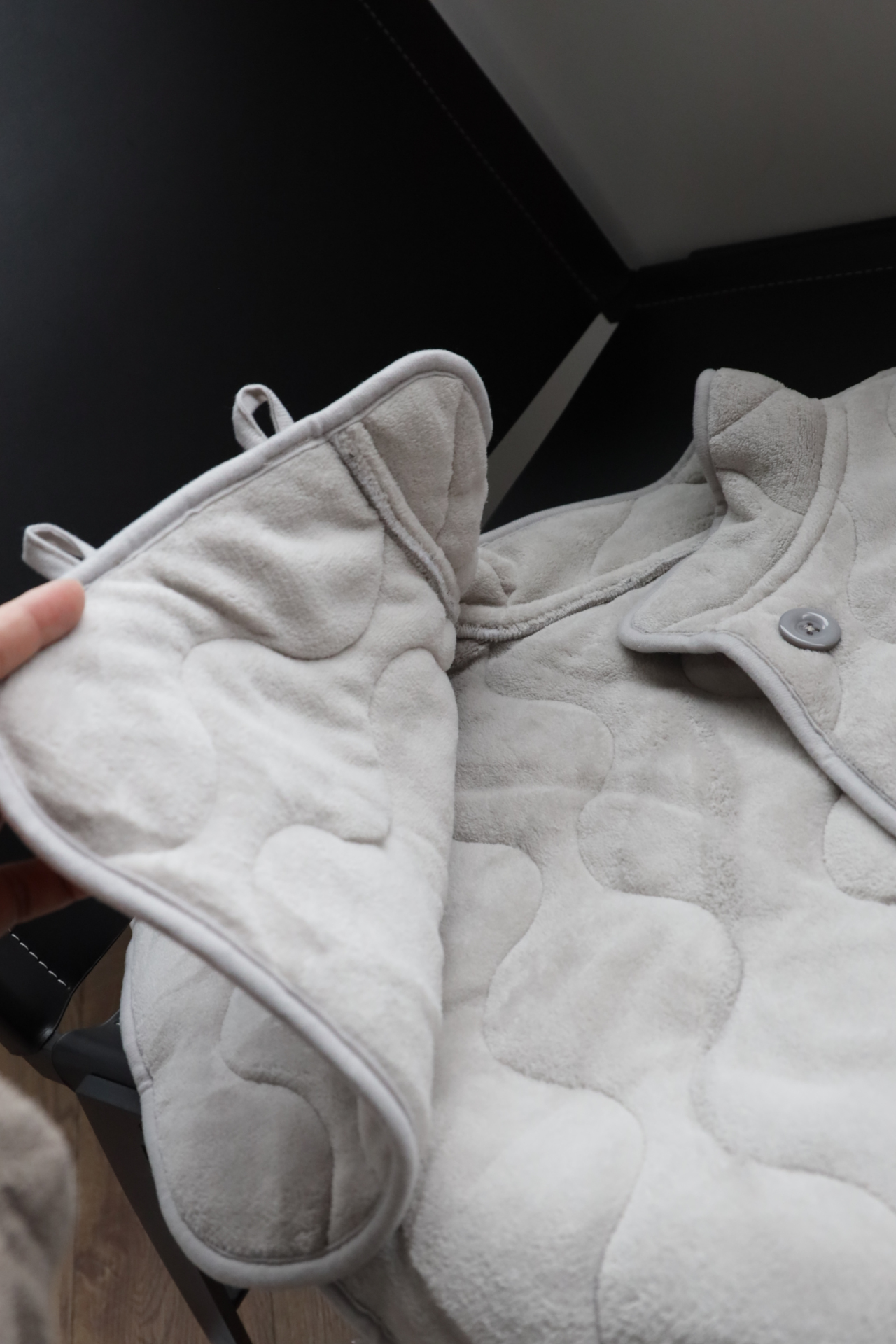 面料采用石墨烯纤维加聚酯纤维混纺技术,吸湿发热+抗菌除螨+抗静电