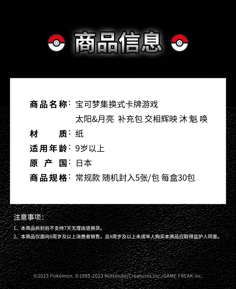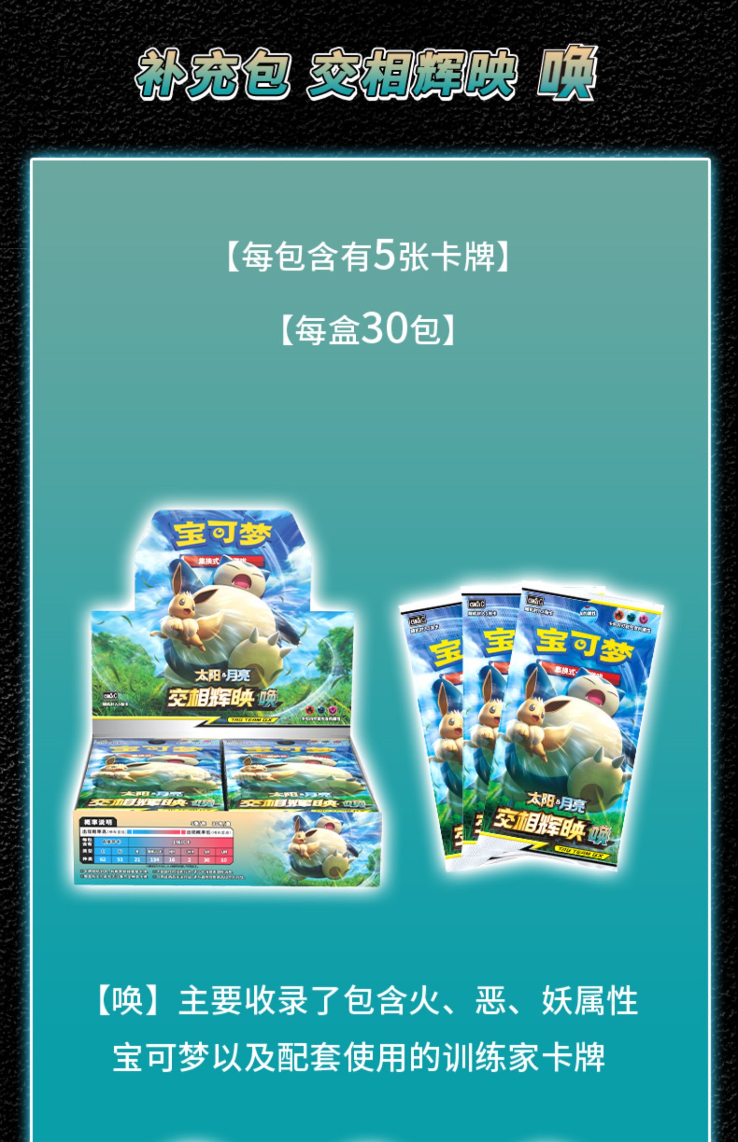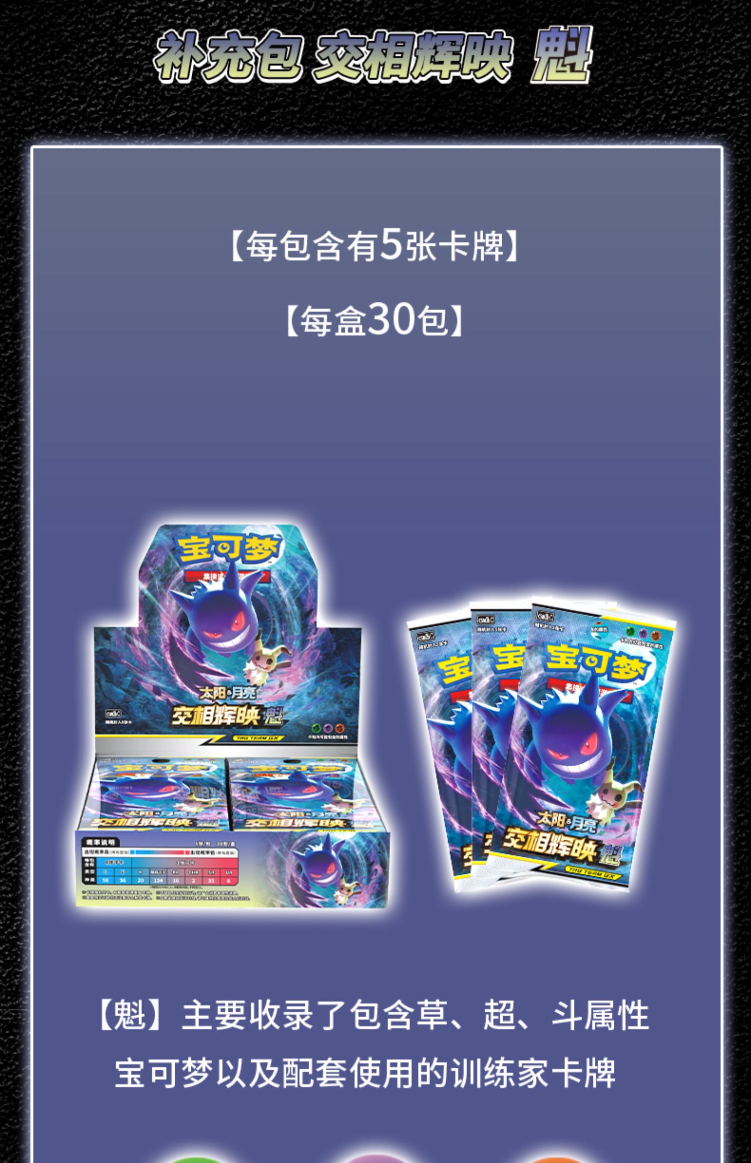 【常规款】宝可梦 集换式卡牌 常规款补充包 5张装 PTCG 简中日月第2弹 交相辉映 30包/盒