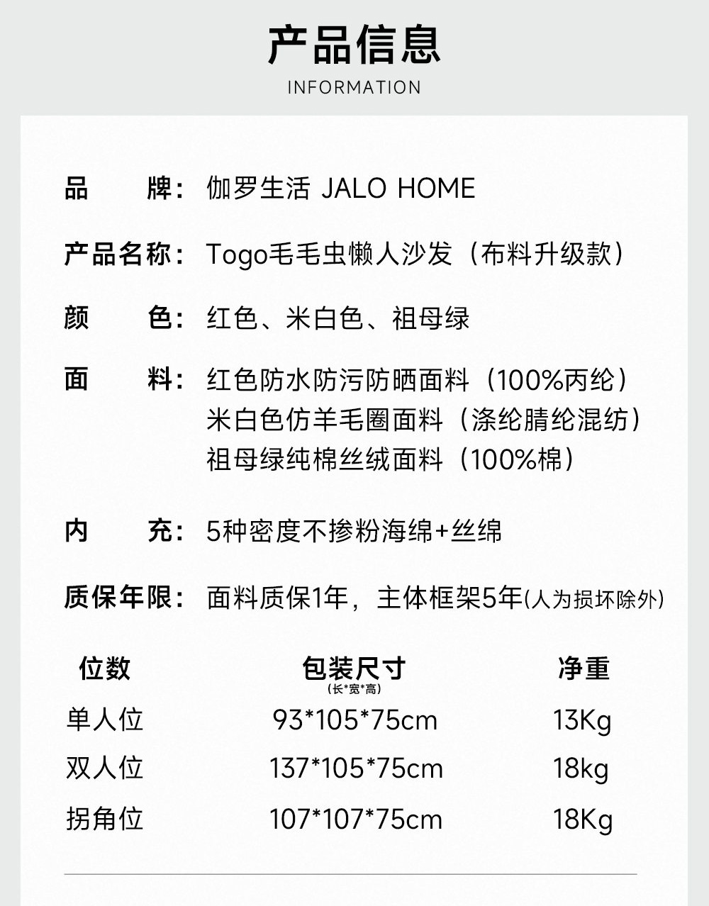 伽罗 JALO 毛毛虫懒人沙发-单人位