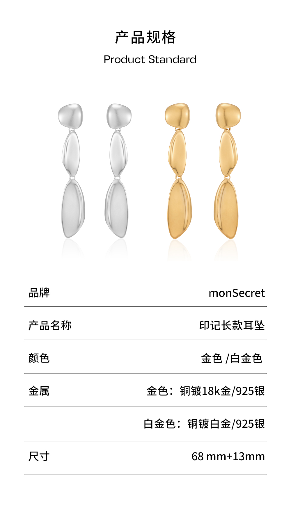 monSecret|PURE0105 印记长款耳环【PURE】 [ 金 / 银 ]