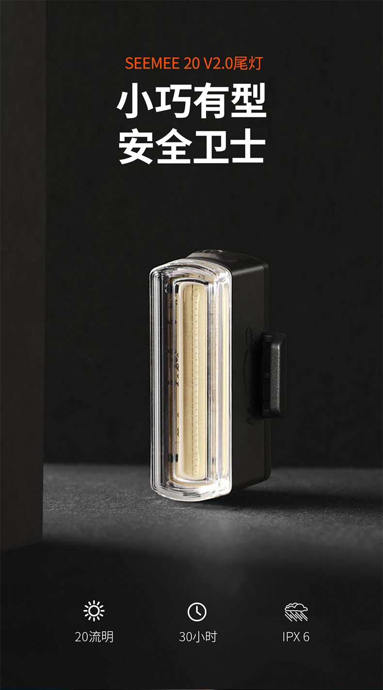 迈极炫SEEMEE20自行车尾灯充电夜骑尾灯山地车骑行灯警示尾灯公路车后灯