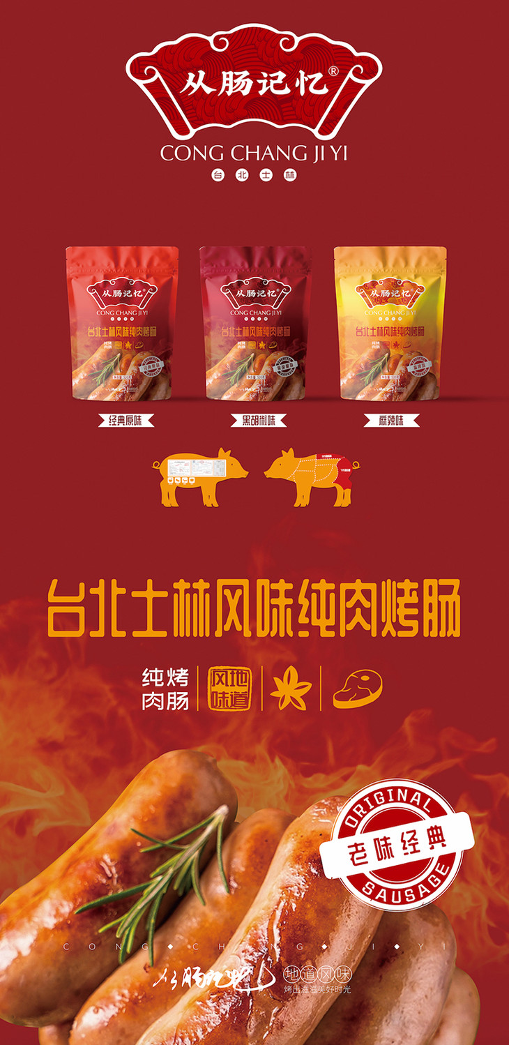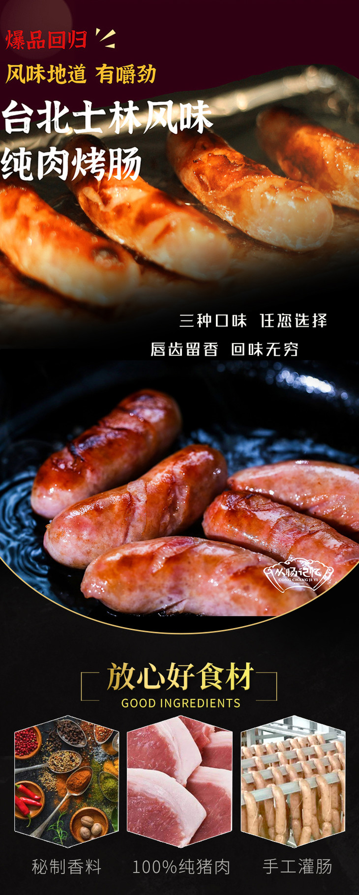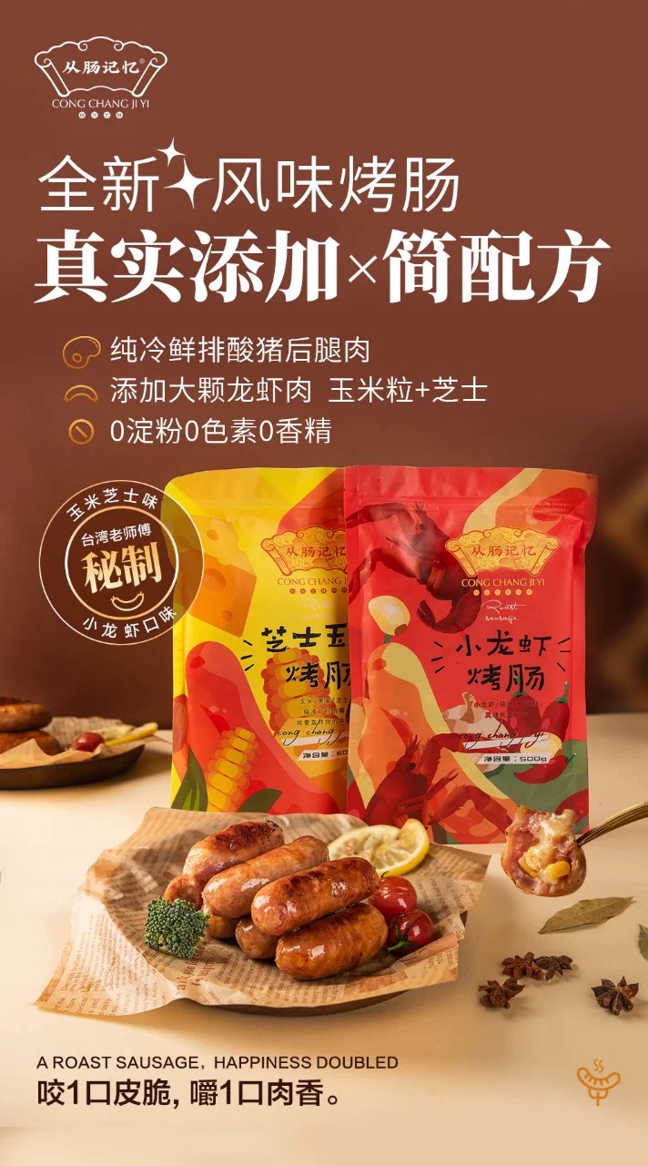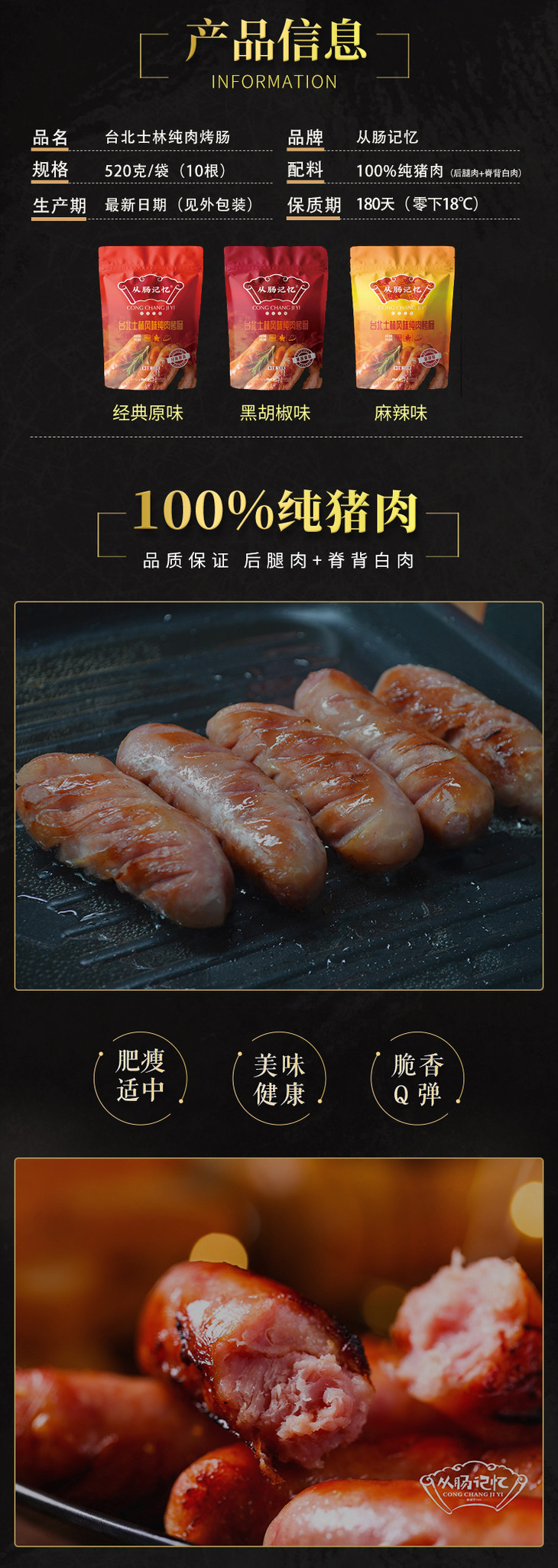 从肠记忆烤肠 · 🈚️添加剂 · 🈚️防腐剂 · 好吃安心/原味/麻辣/黑胡椒520g/包