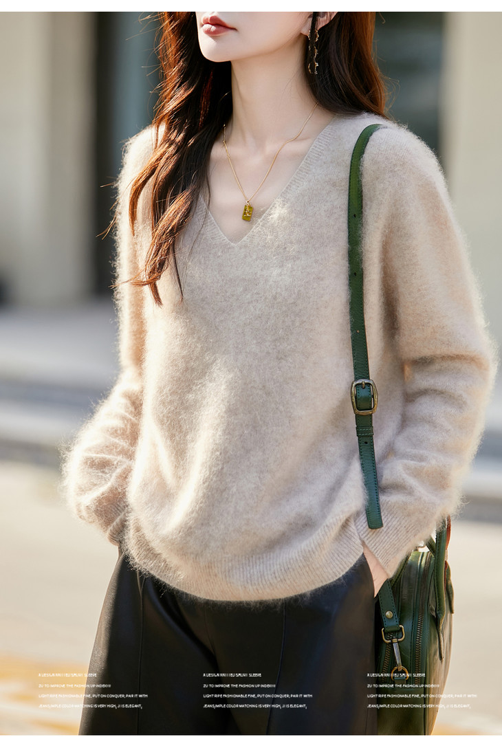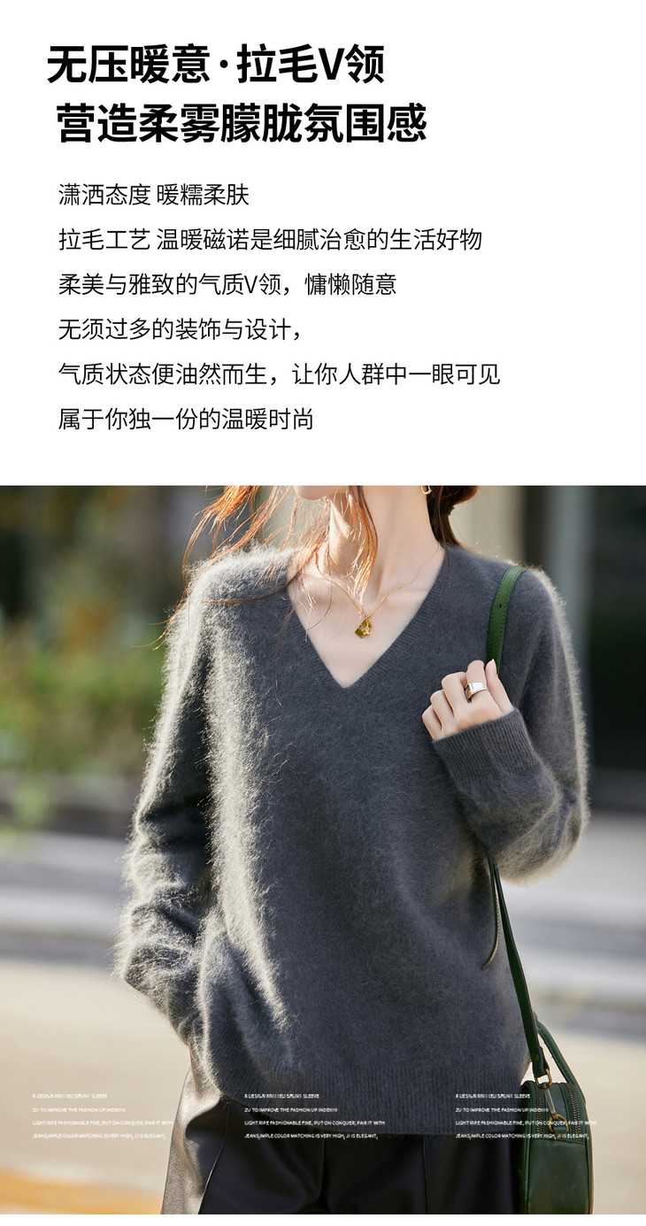 馥迦慵懒软糯拉绒拉毛无缝圆领/V领羊毛衫