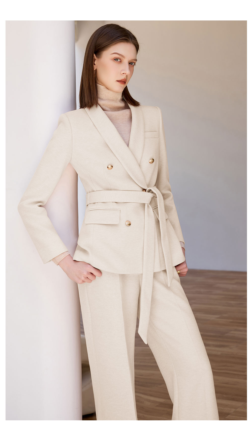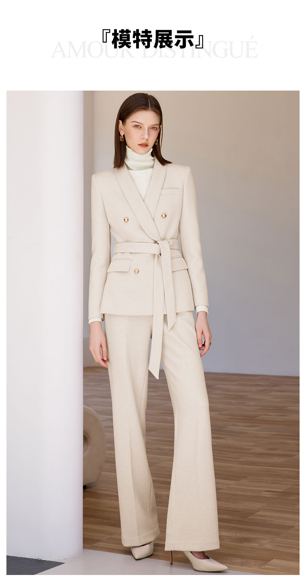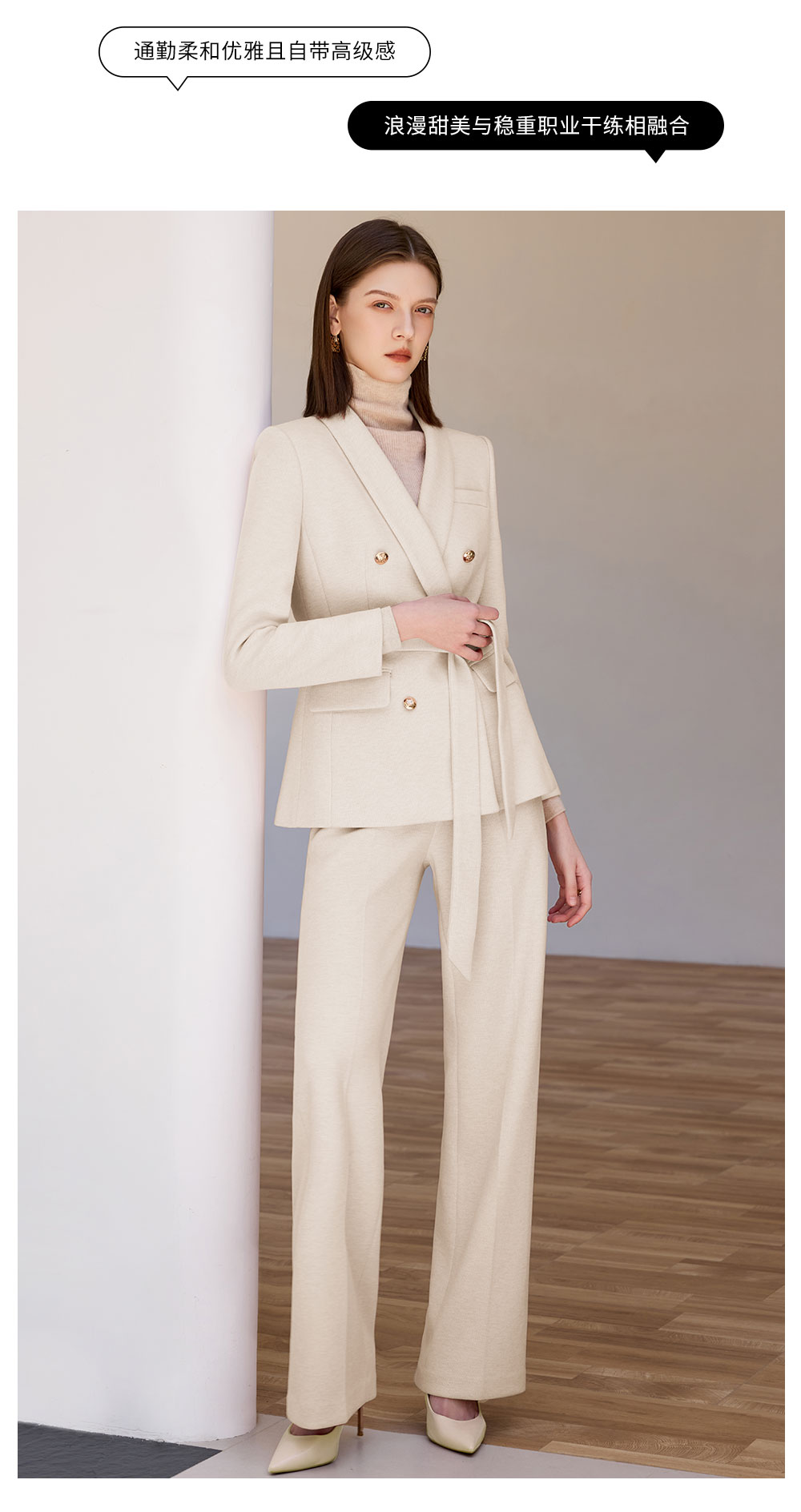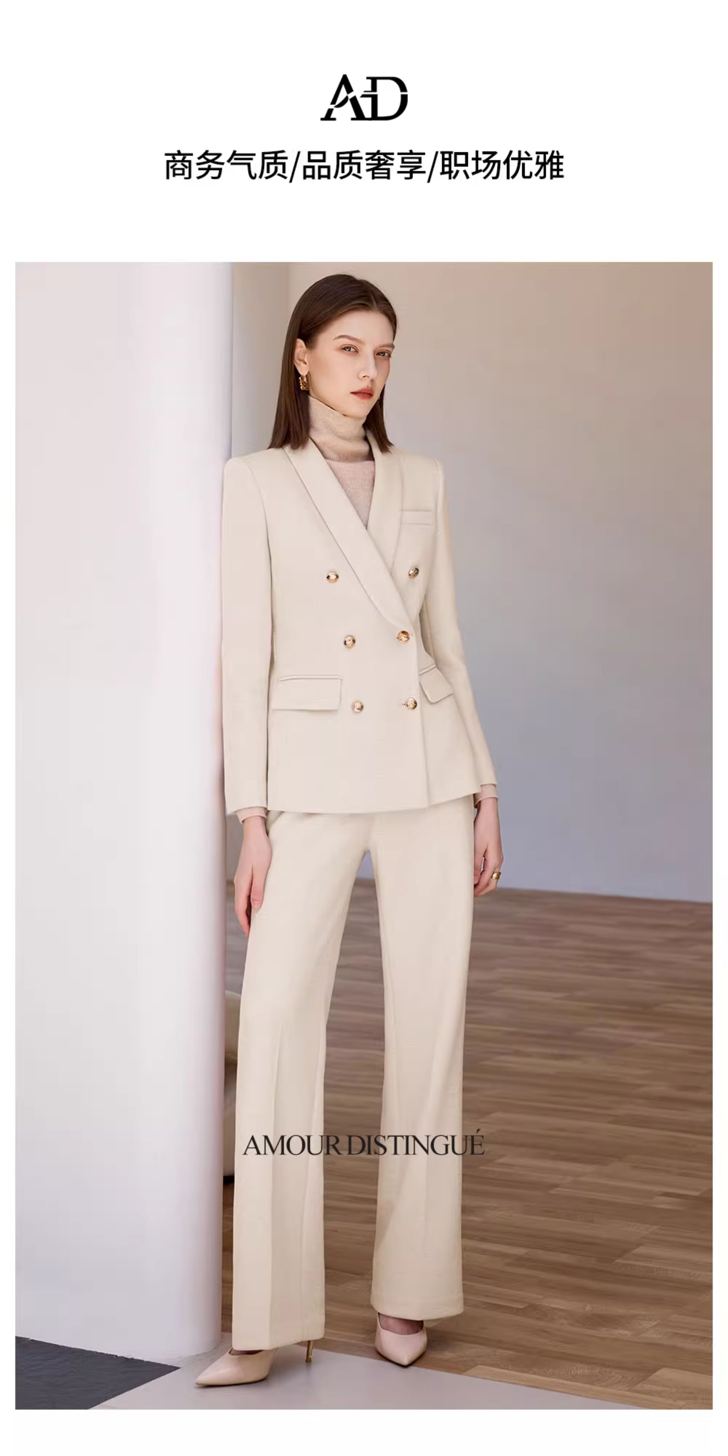 AD米白色正装女套装女2025秋冬新款显白显瘦职业装西服外套阔腿裤