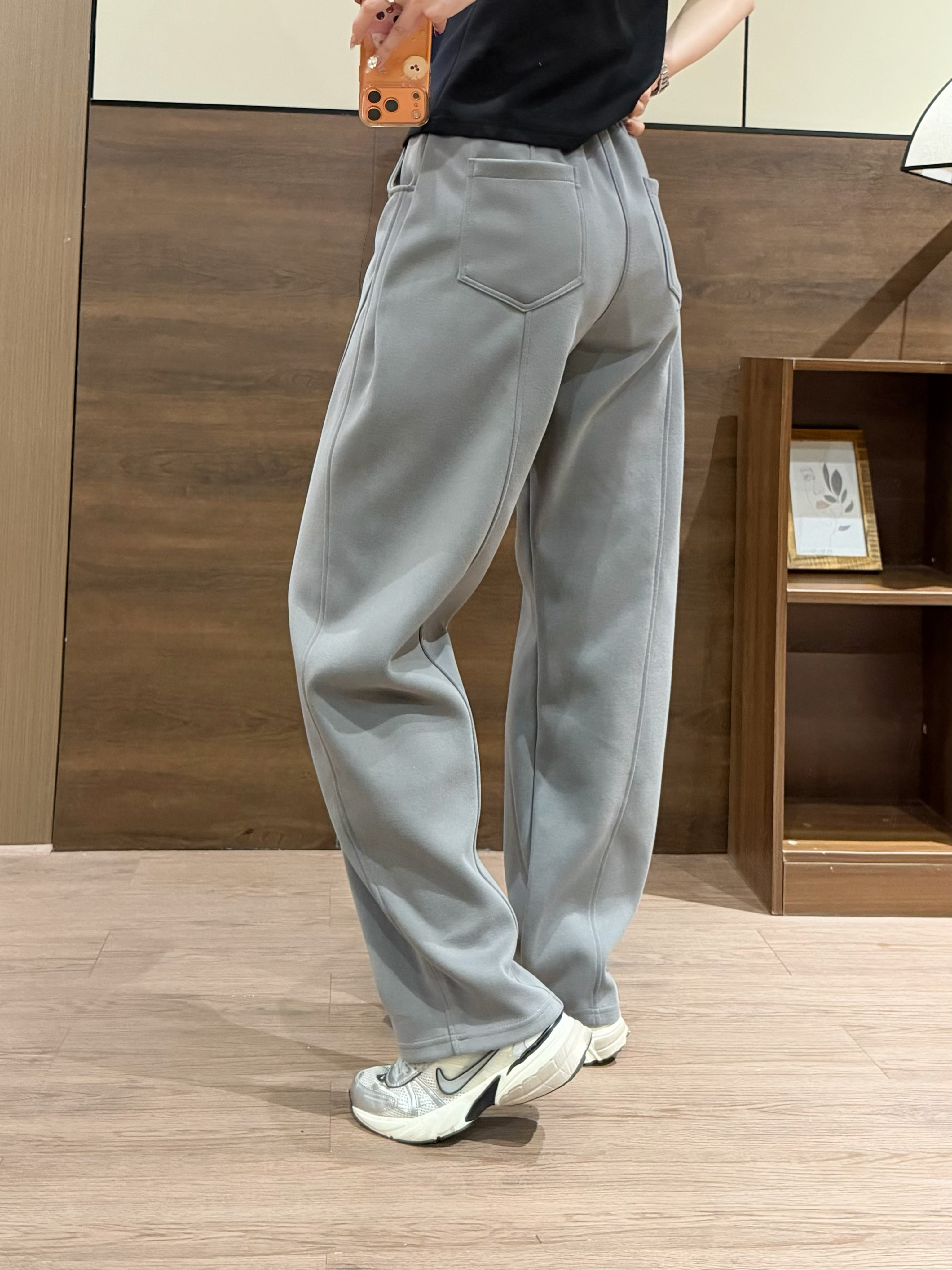 认准原版面料,全面透气,卫裤能做到显瘦垂落版型很讲究裤线设计,全部是拼接滚线裁剪。独特又显瘦。