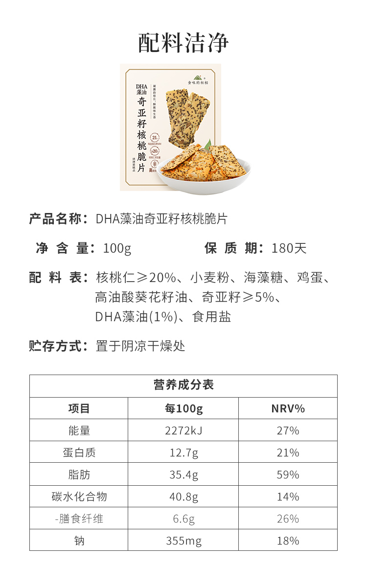 食味的初相*dha藻油奇亚籽核桃脆片100g*3盒/5盒装