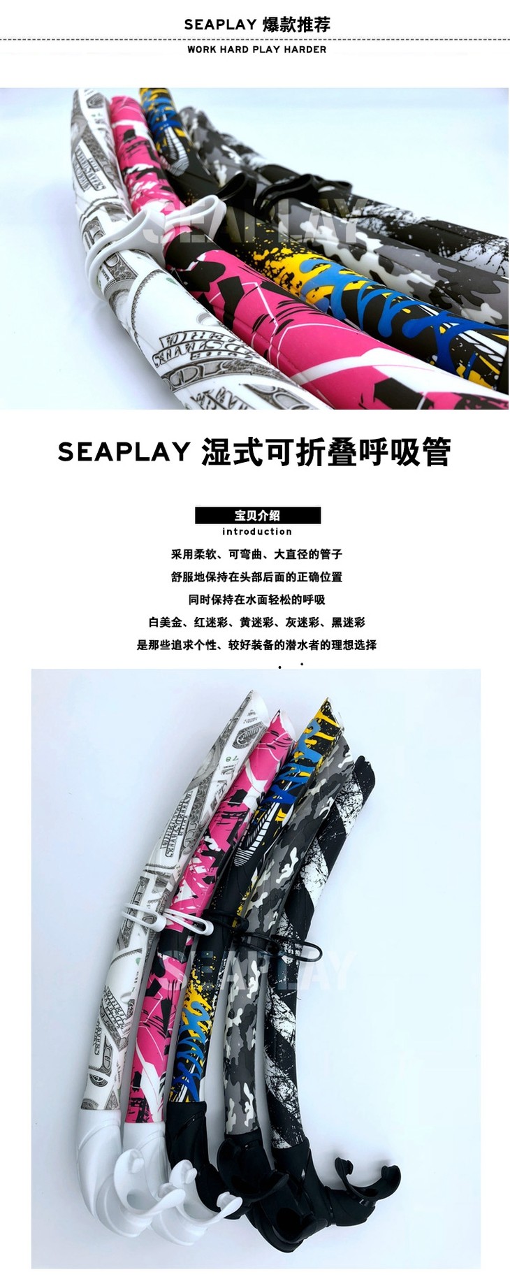 【装备呼吸管】SEAPLAY湿式可折叠呼吸管 花色系列