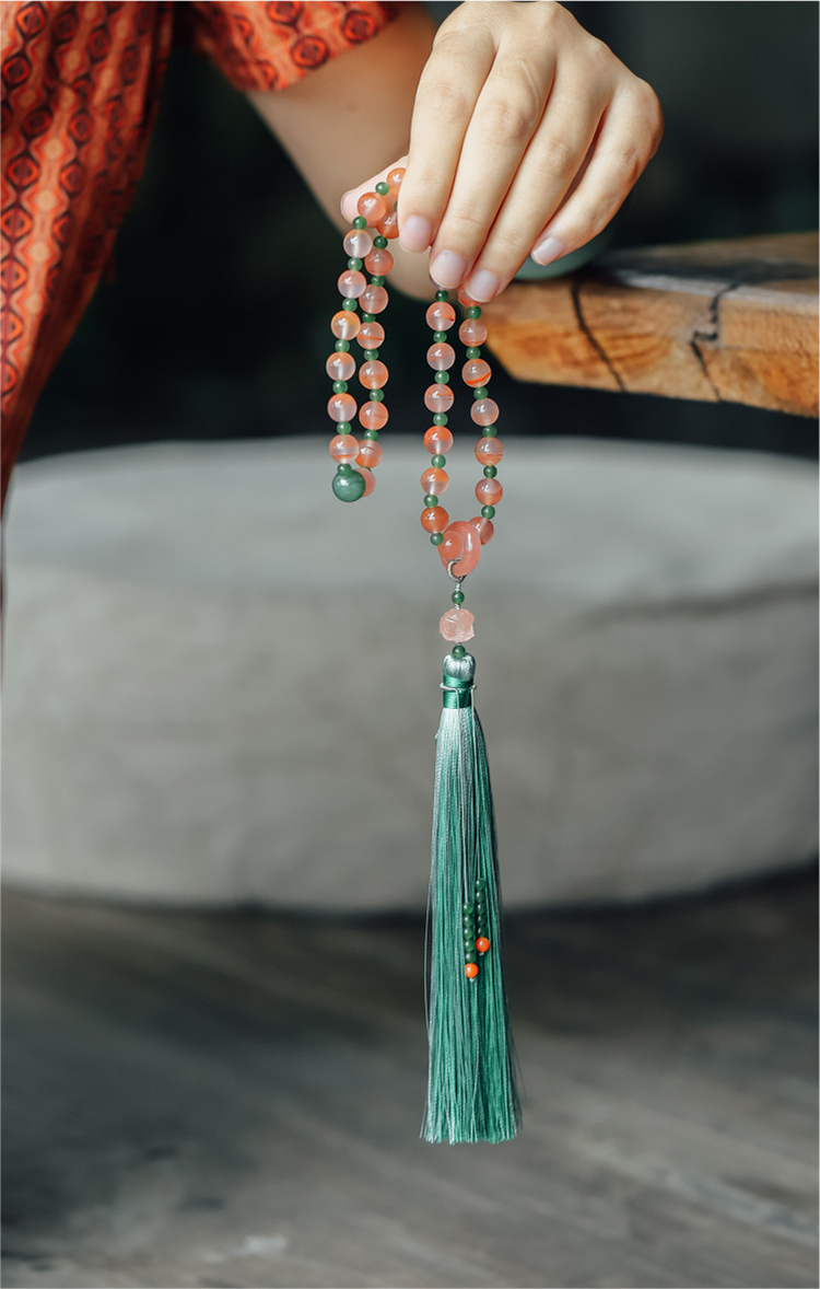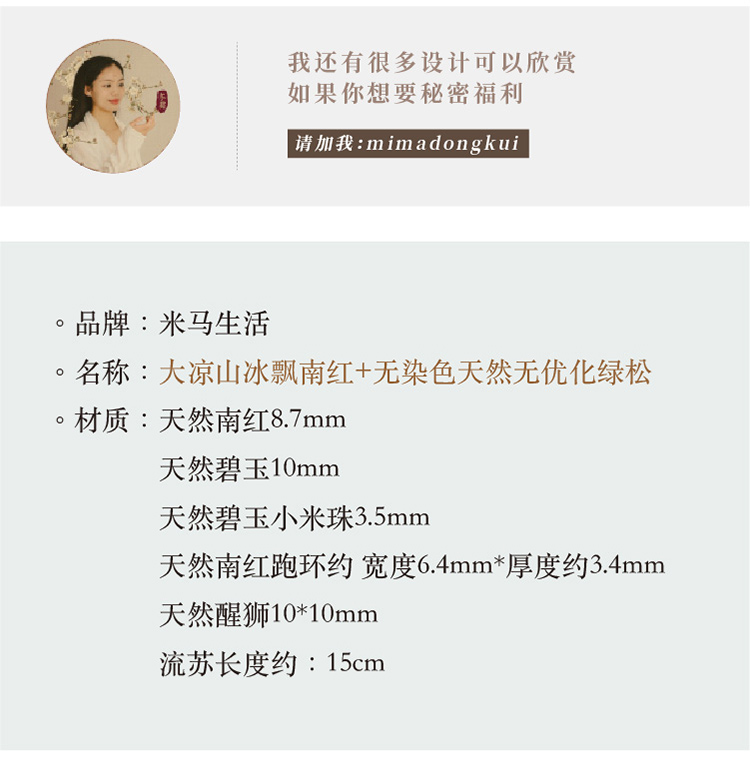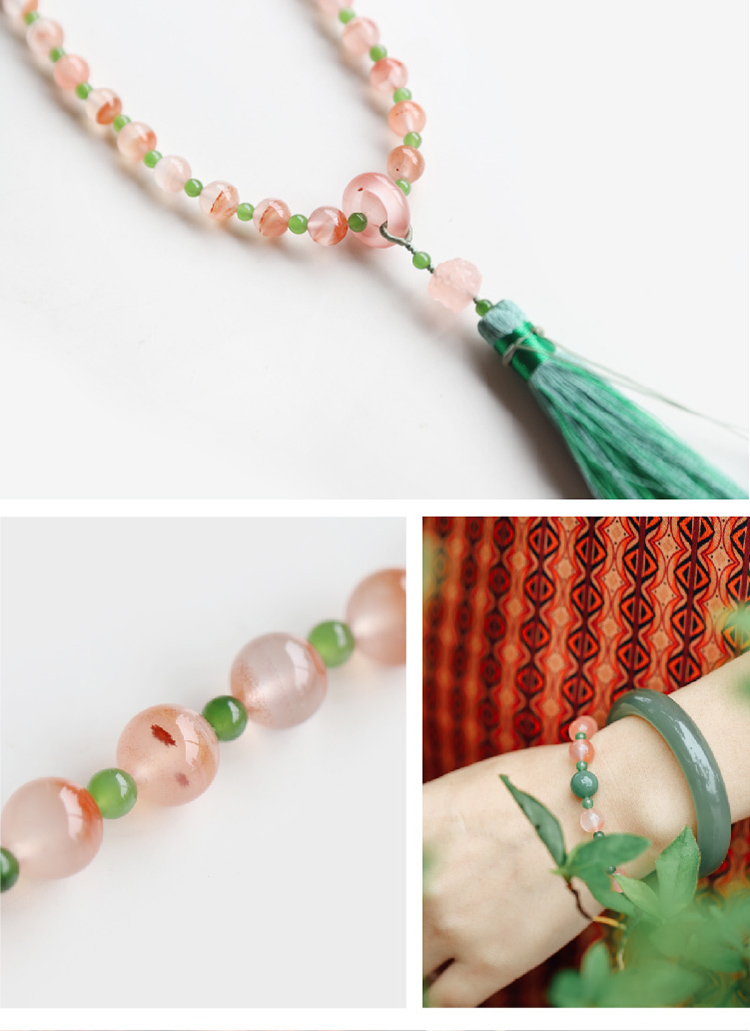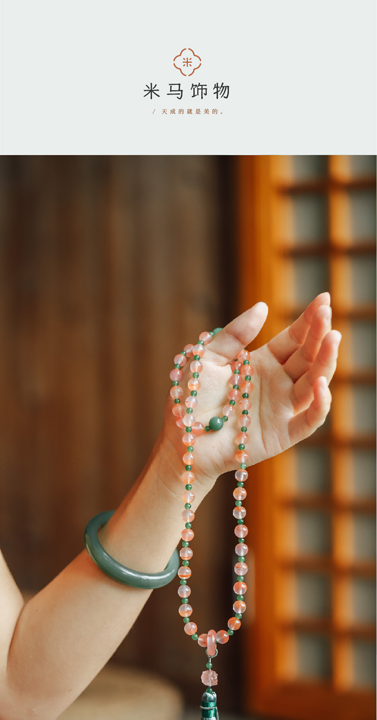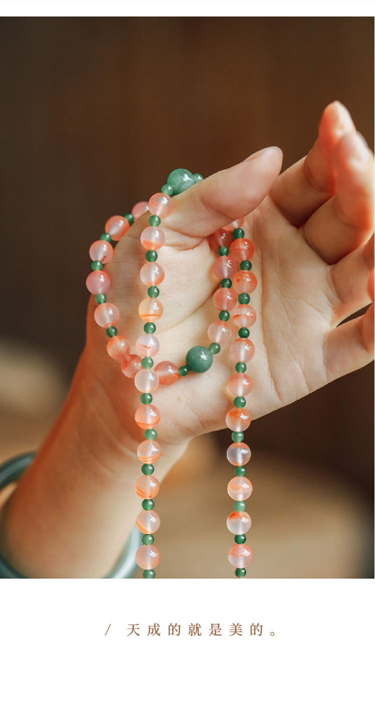 米马饰物 冰飘南红+天然果绿和田碧玉 赋健康新生能量