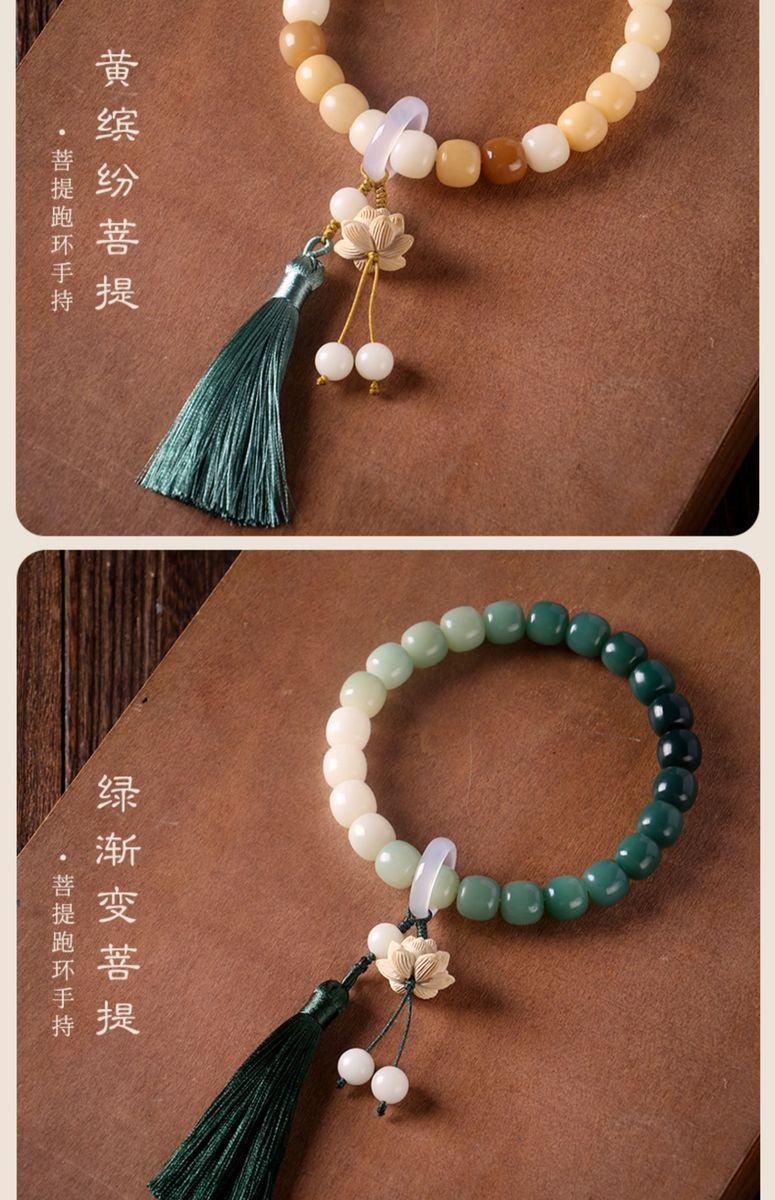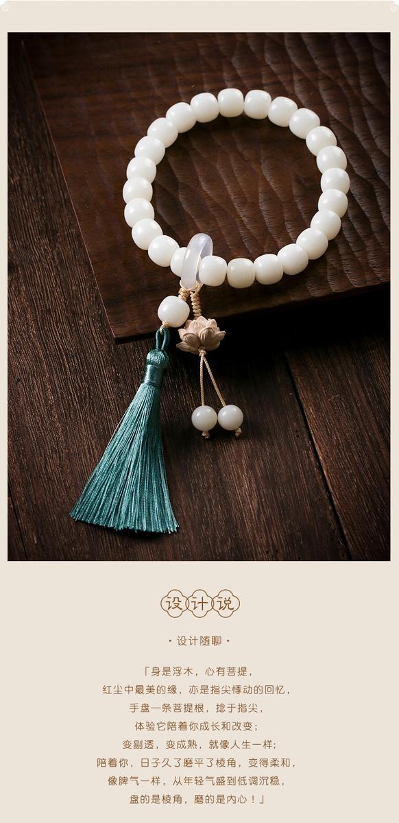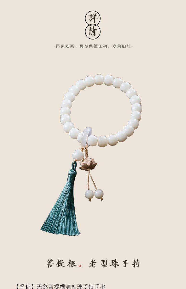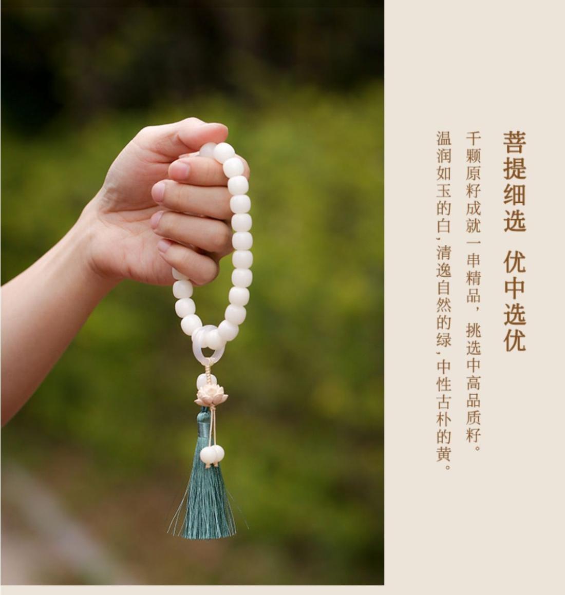 高颜值古风手持渐变白玉菩提根手串莲花穗环手链