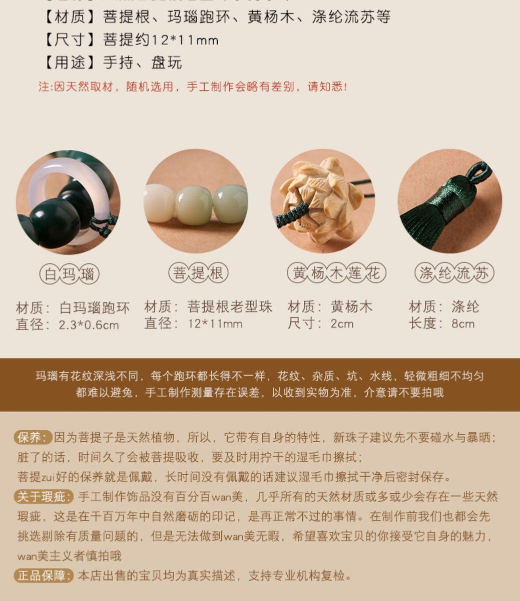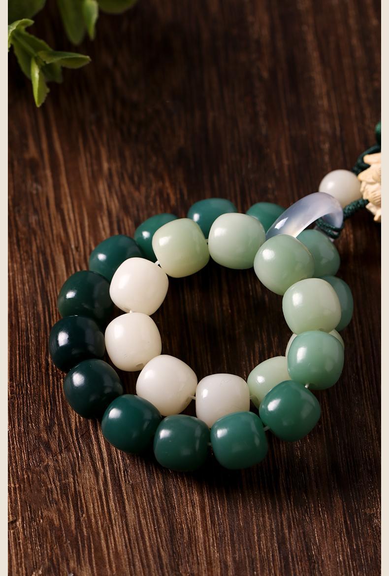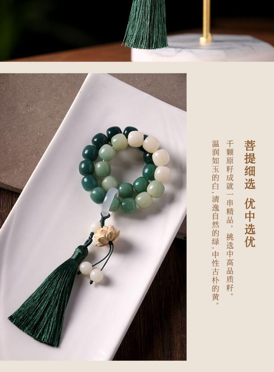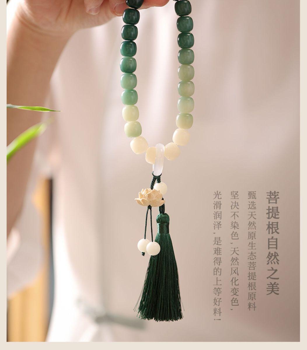 高颜值古风手持渐变白玉菩提根手串莲花穗环手链
