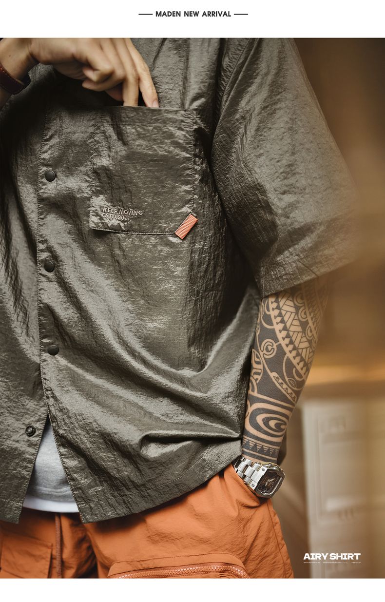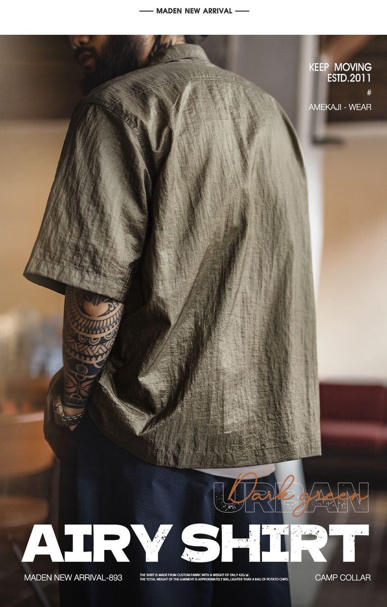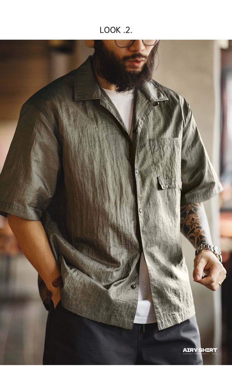 工装优选美式复古山系户外古巴领衬衫肌理感轻薄短袖衬衣男款夏
