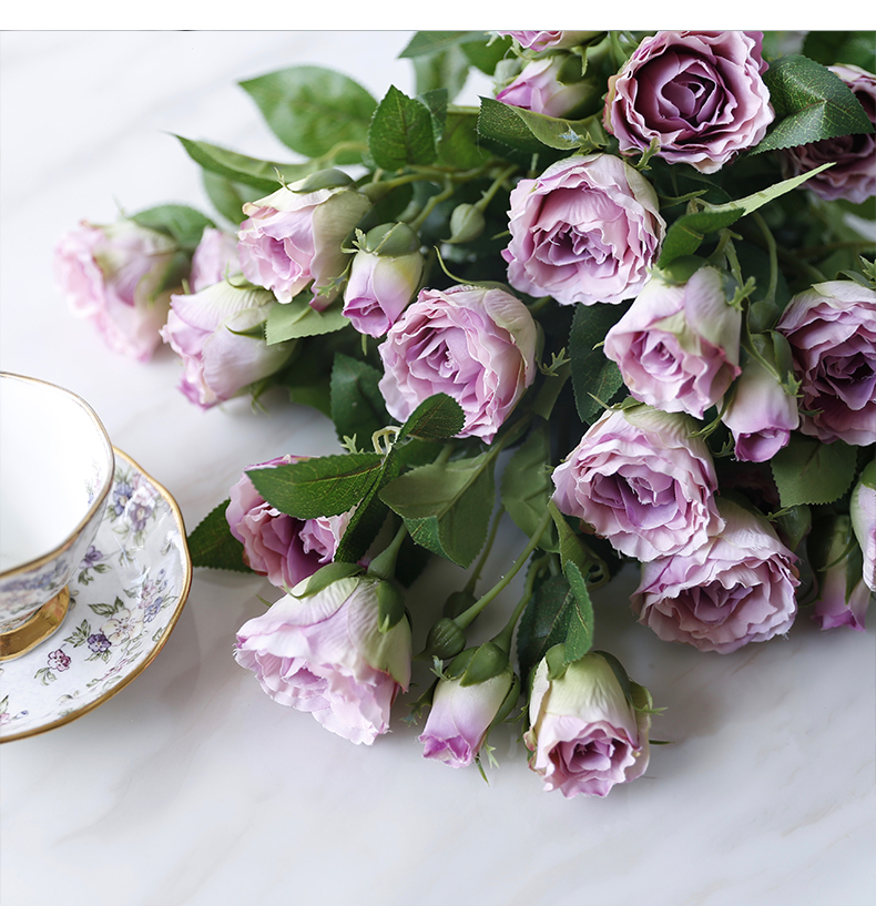 高仿真花玫瑰花加瓶假花田园单支白色绢花高档装饰客厅假花摆设件