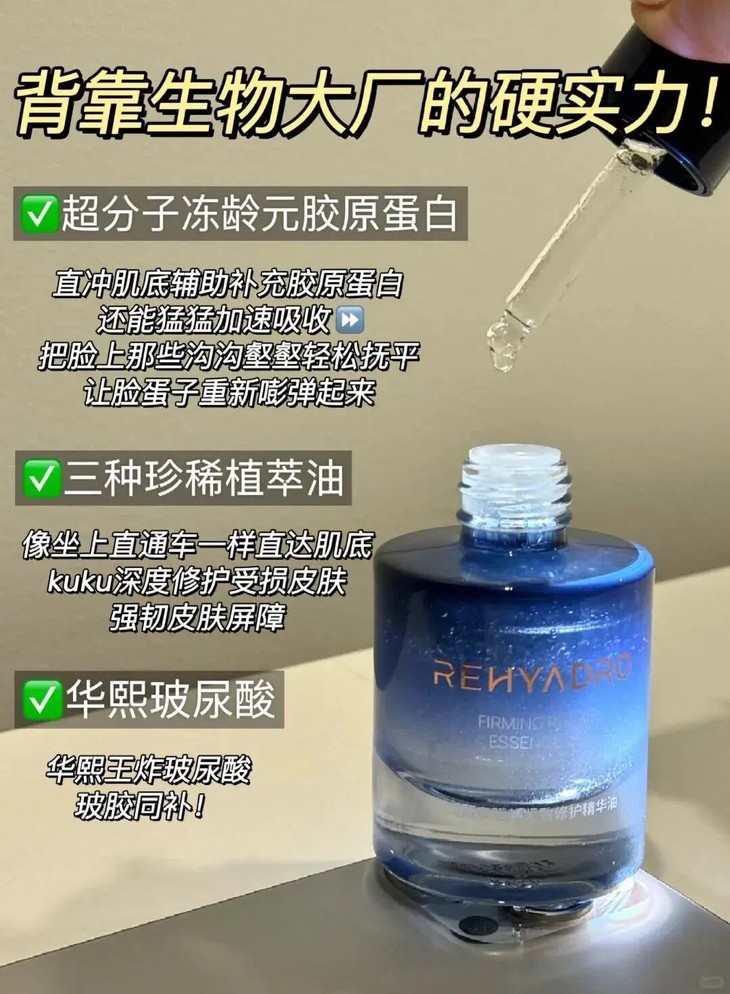 这款超分子胶原油采用油相修护,水相抗垮的逻辑,在修护过程中层层抗垮,持续性抗垮脸。