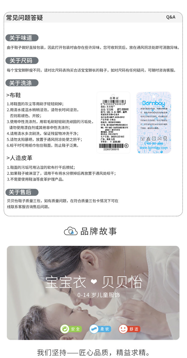 - 贝贝怡专注0-6岁婴幼儿服饰,坚持安全、柔软、舒适的产品理念,为千万中国家庭提供超高品质、安全可靠的婴幼儿服饰产品,妈妈放心,宝宝开心!