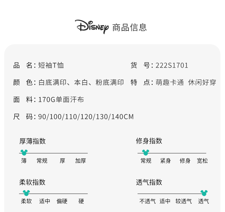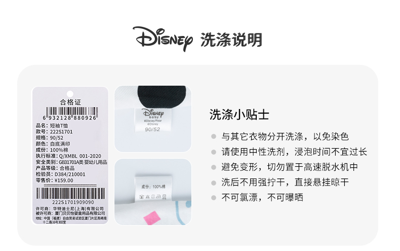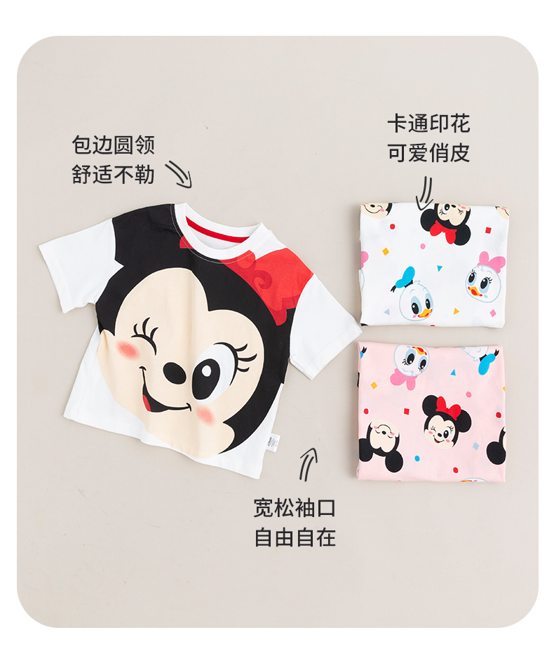 【唐老鸭90周年】迪士尼卡通T恤夏季婴幼儿童装轻薄透气女童T恤