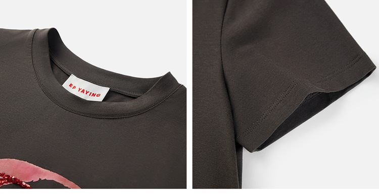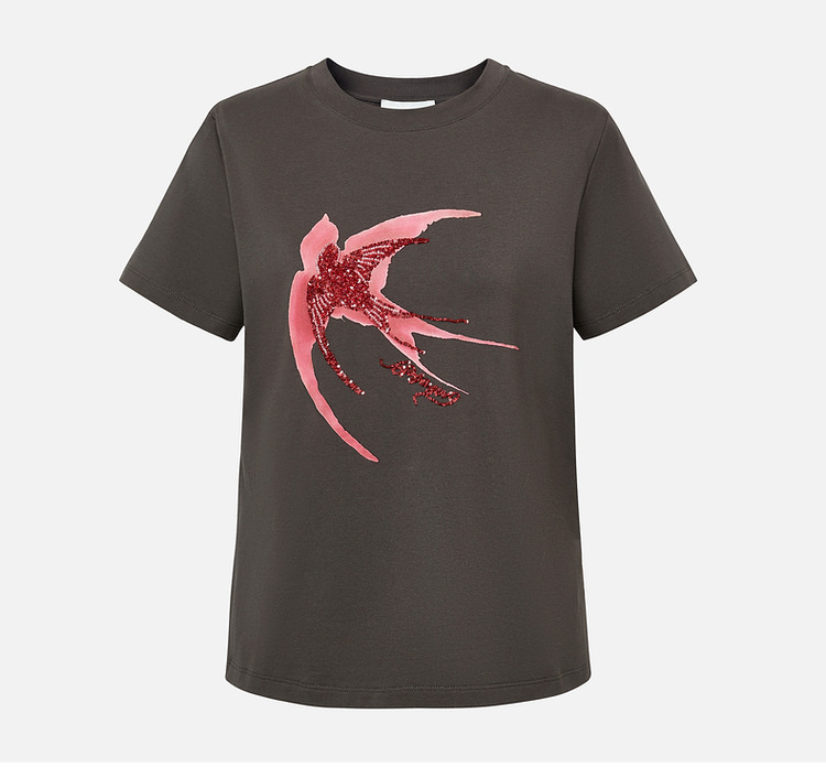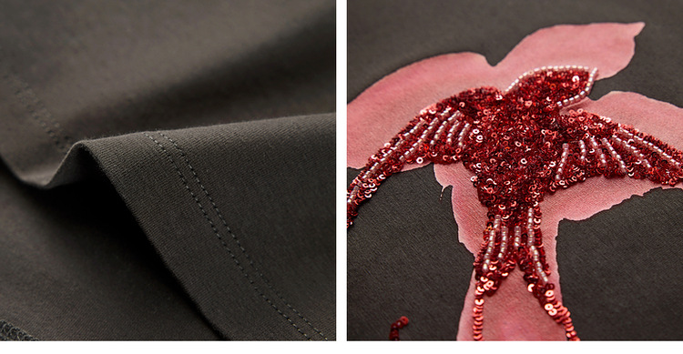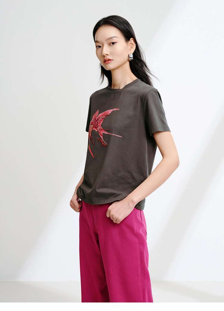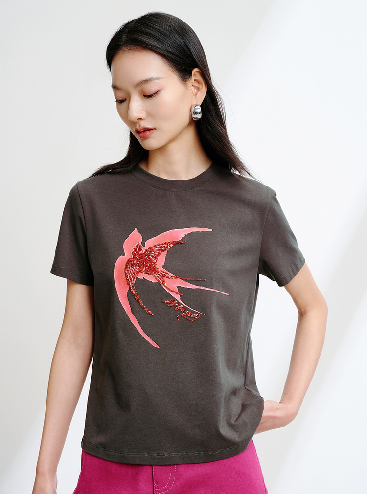 2025春季新款女装 舒适棉短上衣!珠绣印花圆领短袖T恤!