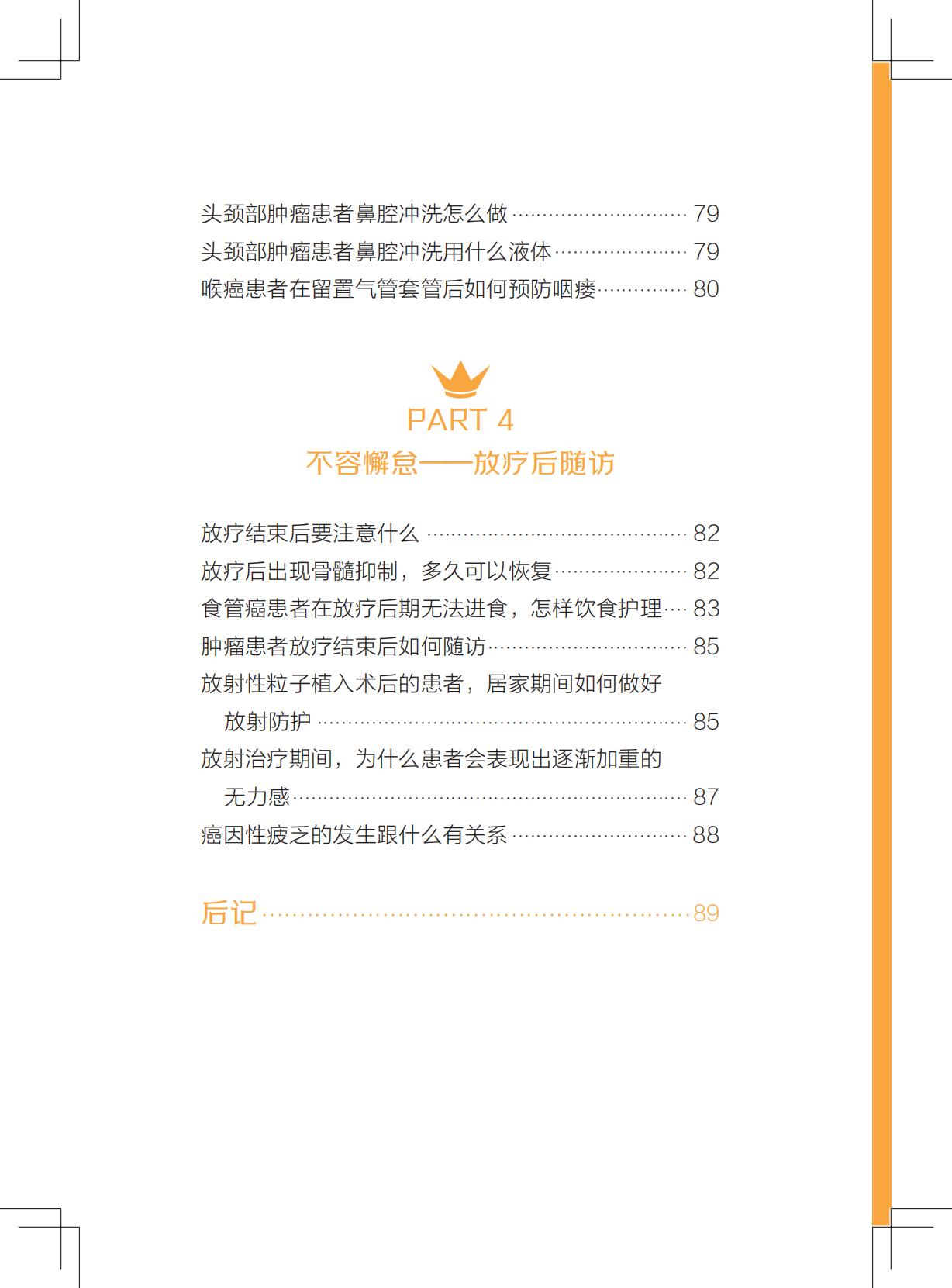 本书由放疗护理专家编写,针对放疗患者关心的护理问题进行了详细介绍,通过通俗易懂的文字,对放疗前健康宣教、放疗中的注意事项、放疗后居家护理等内容进行了分类讲解,在注重专业性的同时兼顾了趣味性,期望患者和家属能够通过本书了解放射治疗的流程及注意事项等相关护理知识,能够有准备地积极配合医生完成放疗,减少或缓解并发症,提高患者居家生活质量。