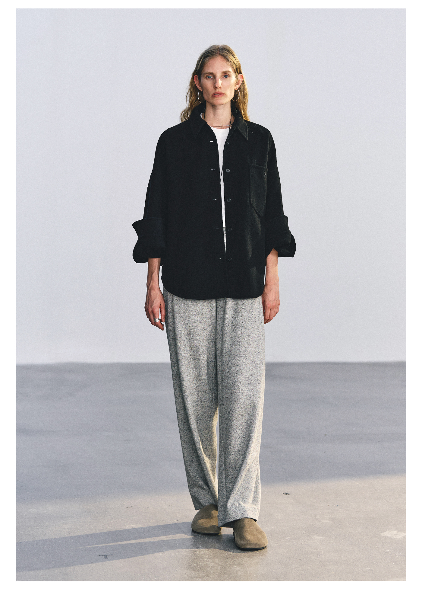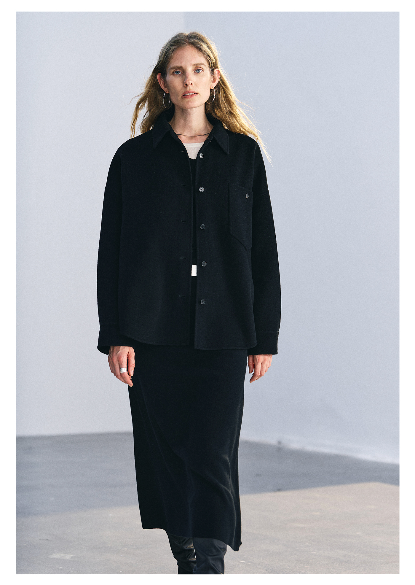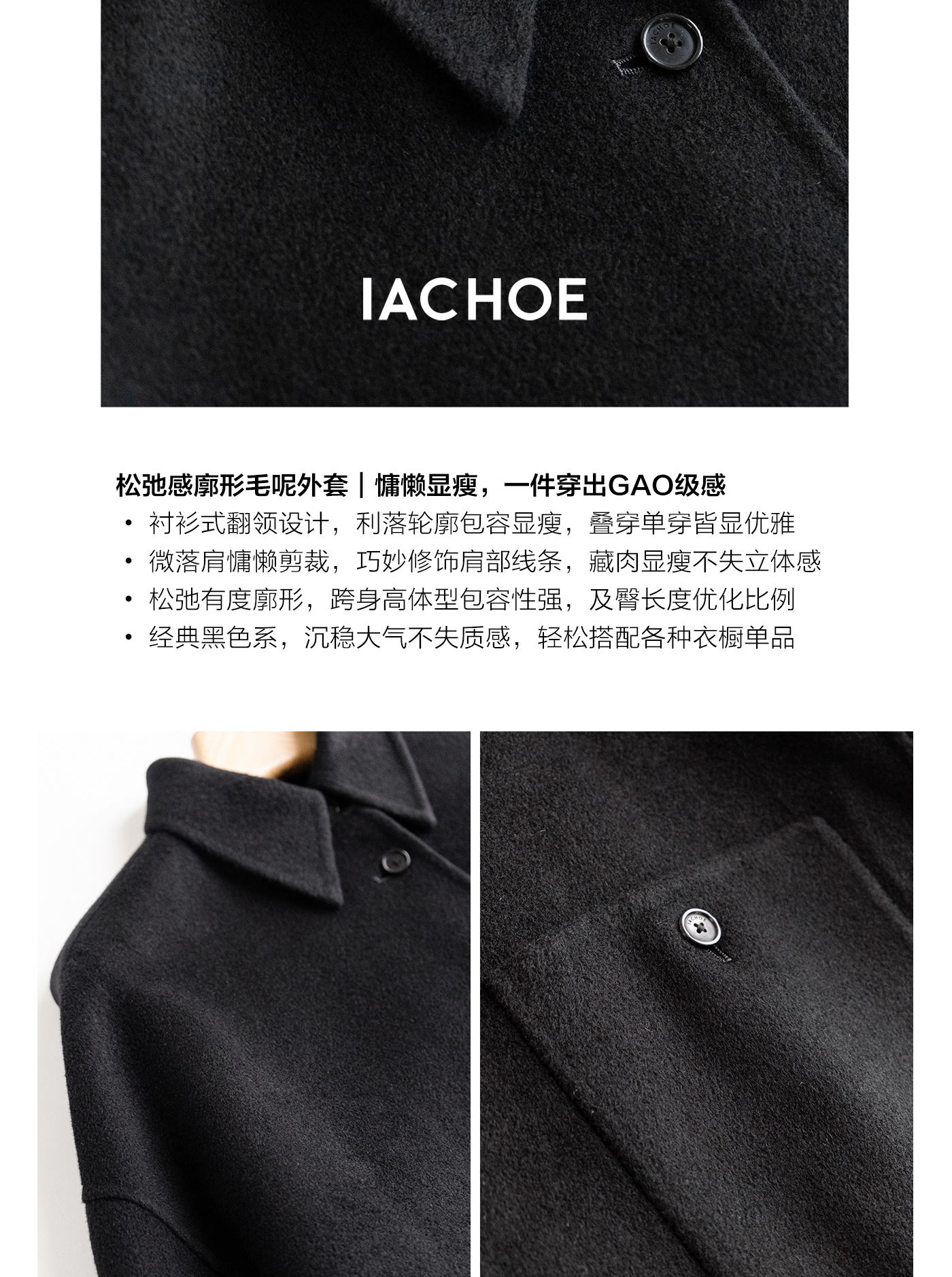 棉仓3561566006-羊毛羊绒衬衫款毛呢大衣女 25秋冬翻领廓形双面呢毛呢外套