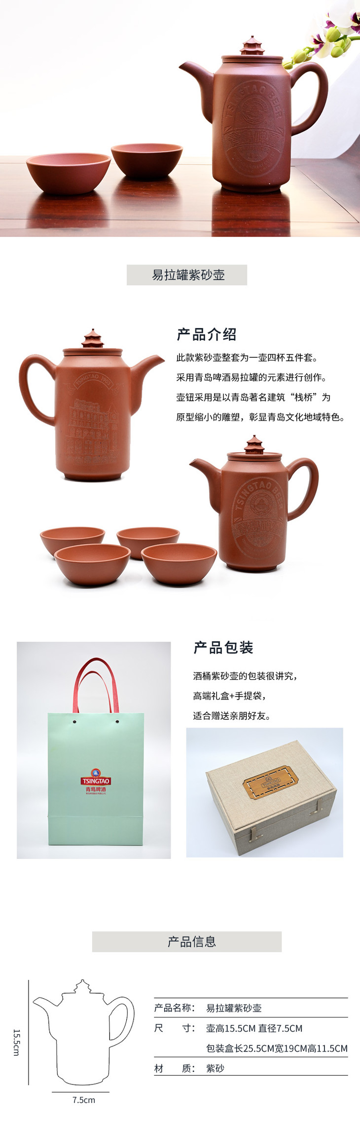 酒桶紫砂壶茶具套装 230ml 青岛啤酒博物馆特别出品 青岛啤酒 官方文创