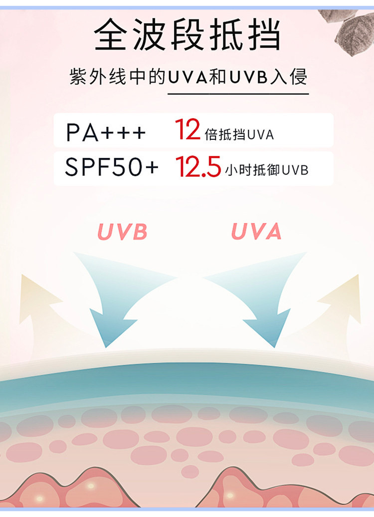 🙋♀️ SPF50+ PA+++,广谱全波段高倍防晒;