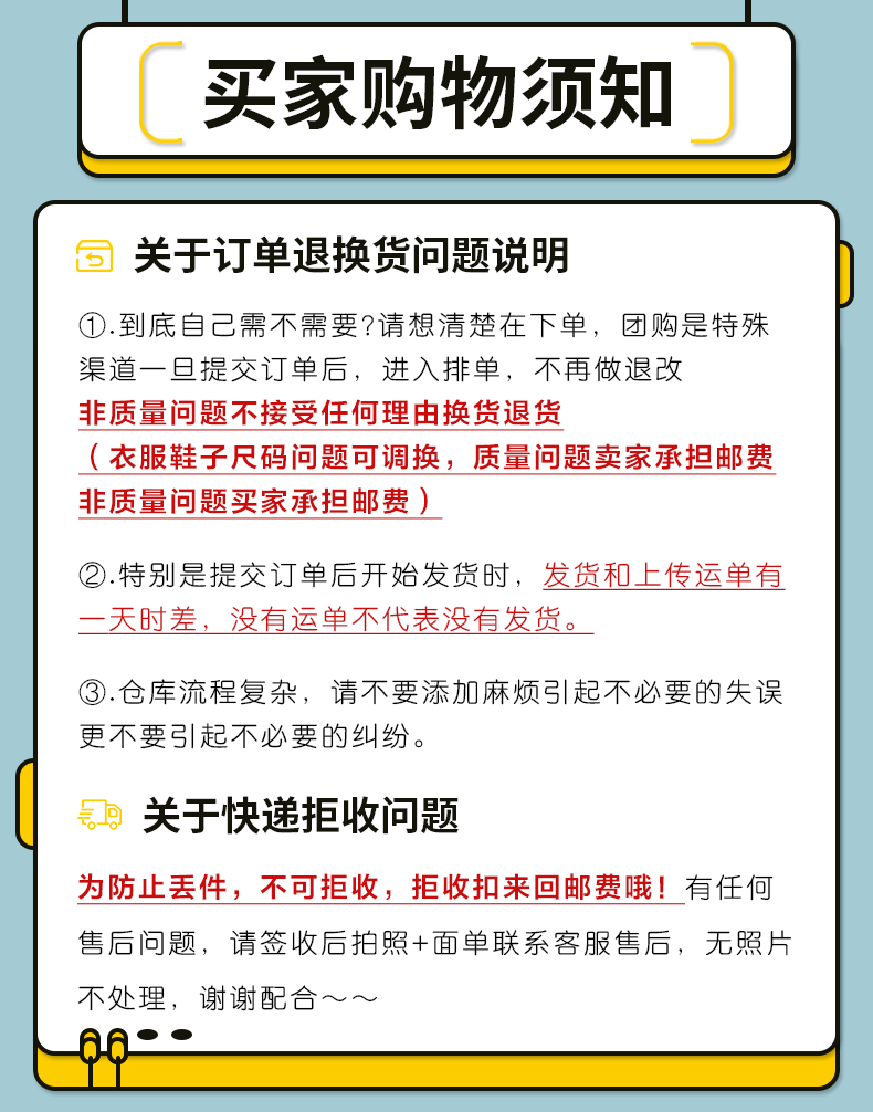 3、发货和上传运单有24-48小时时差,没有运单/单号无物流不代表没有发货!!!产品一旦发出不支持拦截/改地址/拒收,拒收不售后!!!