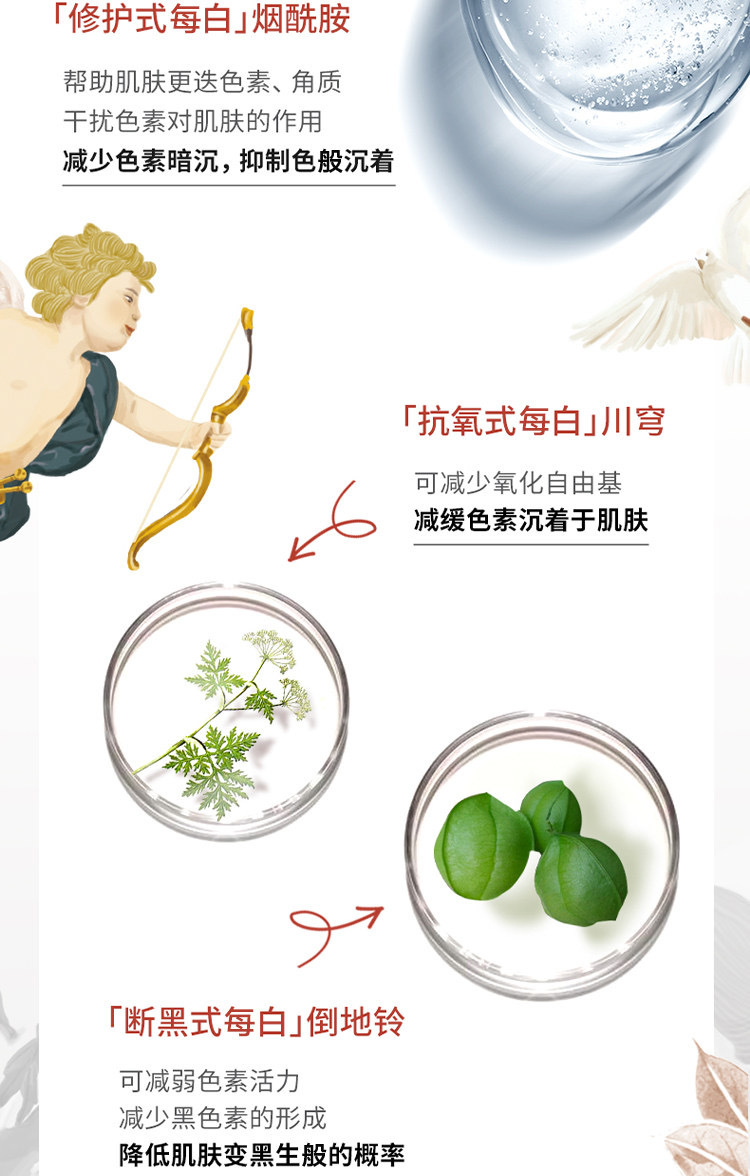 🙋♀️ 添加烟酰胺等多重美白成分,直击晒斑,实力美白;