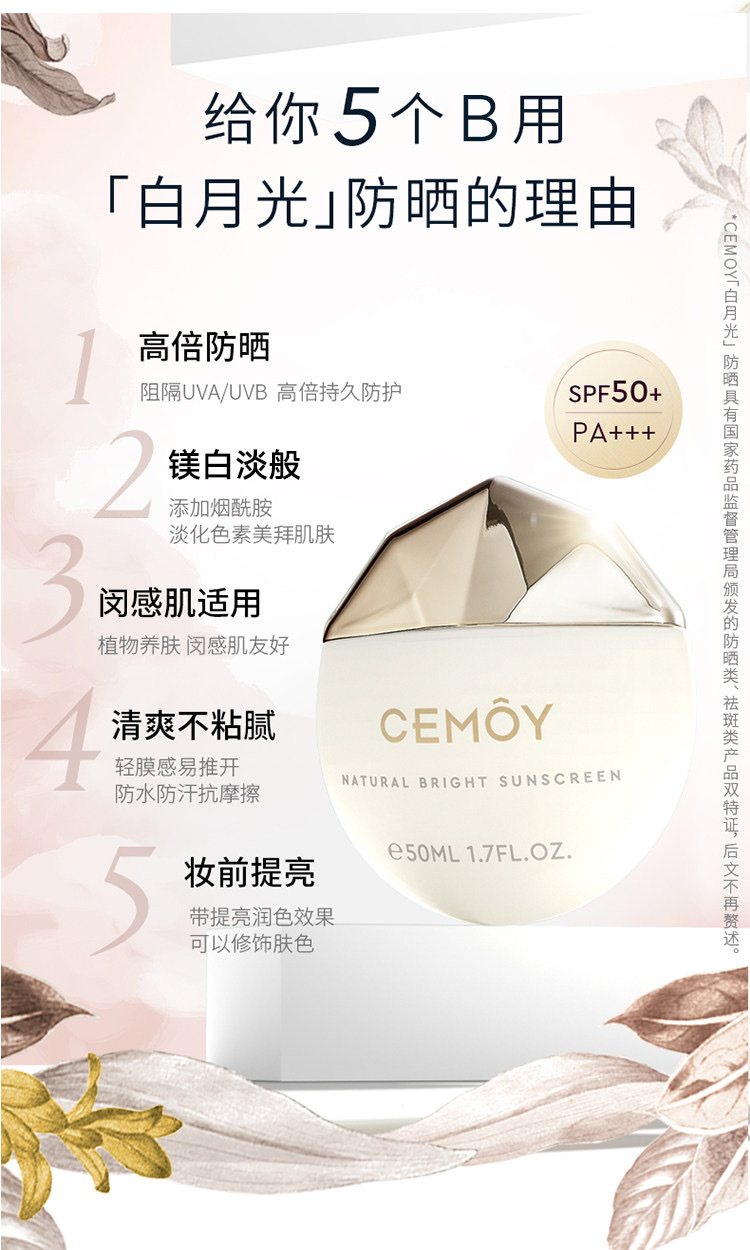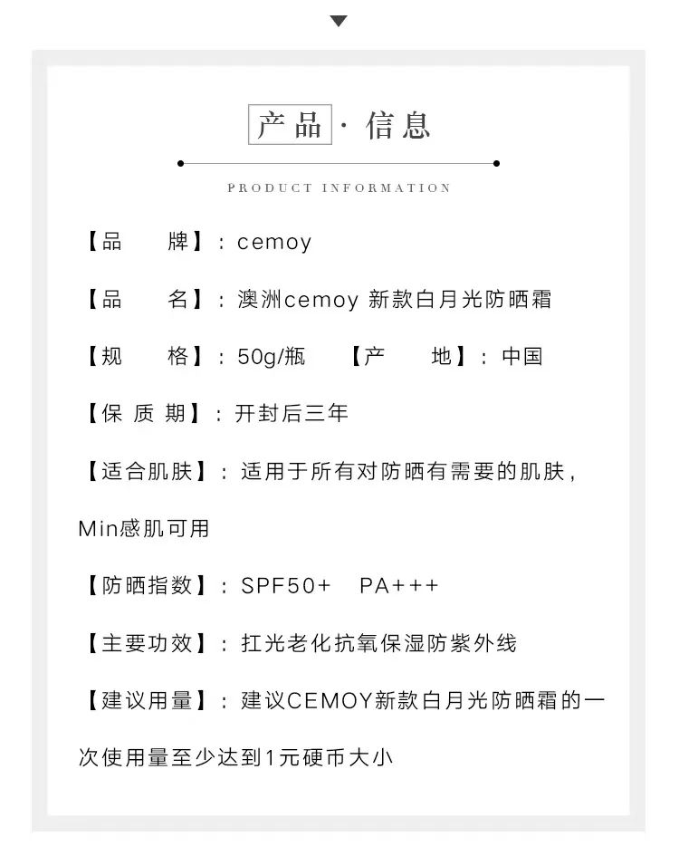 今天就来给大家推荐一款来自澳洲的 CEMOY 澳诗茉白月光防晒霜。