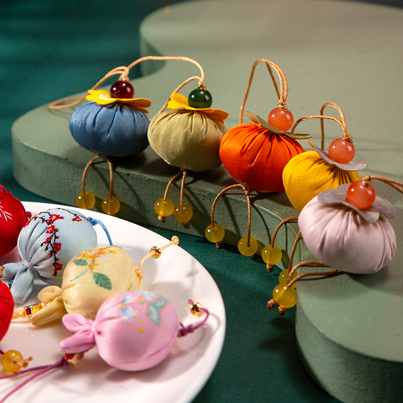 香囊所用的布料,触肤柔软舒适,手链的每一处细节都十分精巧。