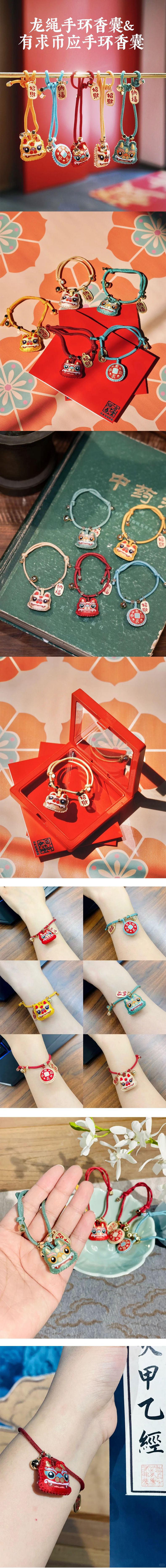 我们重点推荐这三款:龙首手环香囊、"有求币应"手环香囊、龙腾四海香囊,都是今年的热门款哦。