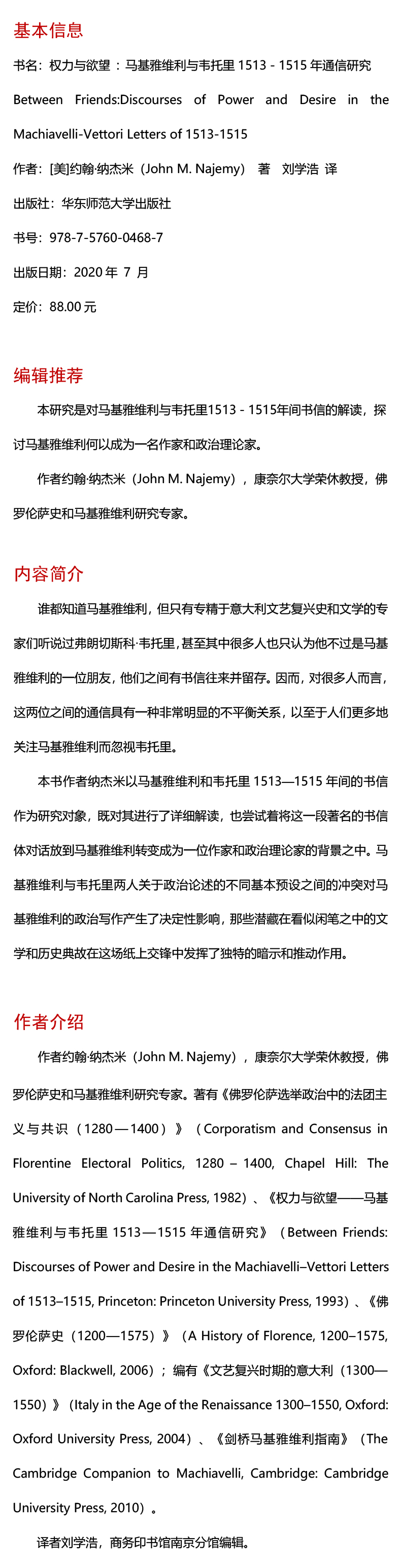 权力与欲望 马基雅维利与韦托里1513-1515年通信研究 经典与解释 马基雅维利集 正版 华东师范大学出版社