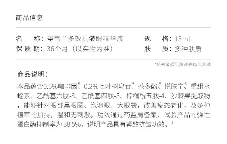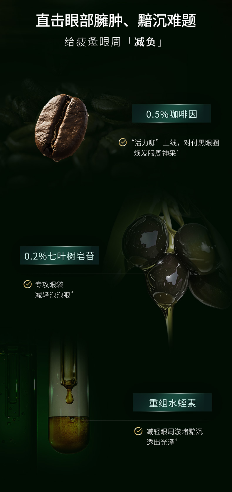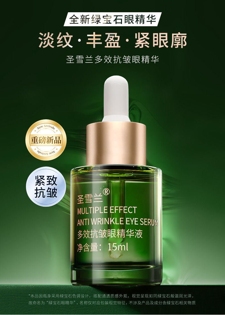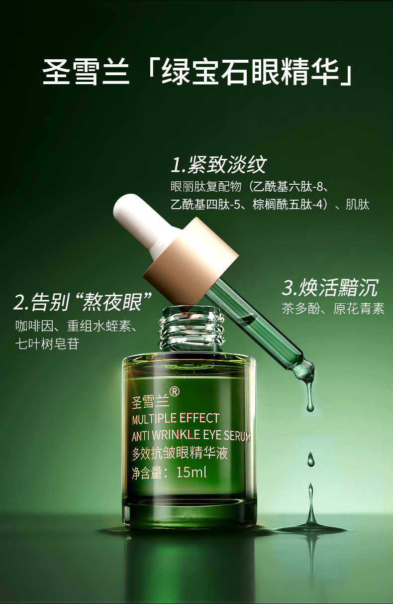 【自营】圣雪兰 绿宝石多效抗皱眼精华15ml 咖啡因黑眼圈眼纹眼袋克星