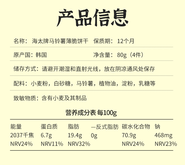 韩国进口海太Slim超松脆土豆薄薯片马铃薯薄脆饼干网红小零食80g