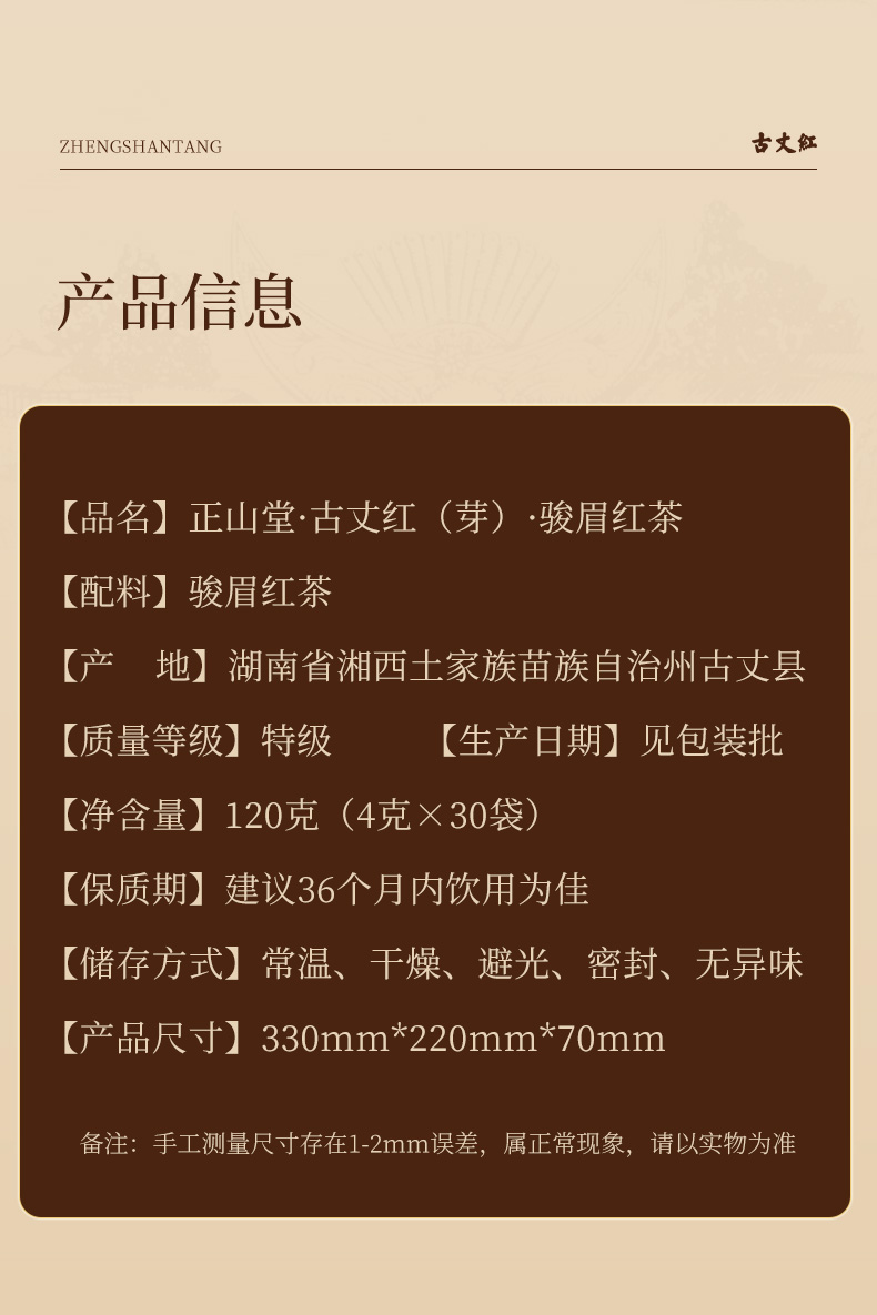正山堂 古丈红单芽礼盒装 特级骏眉红茶正宗湖南茶叶送礼长辈120g